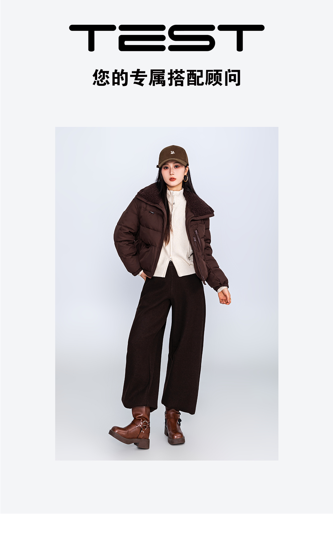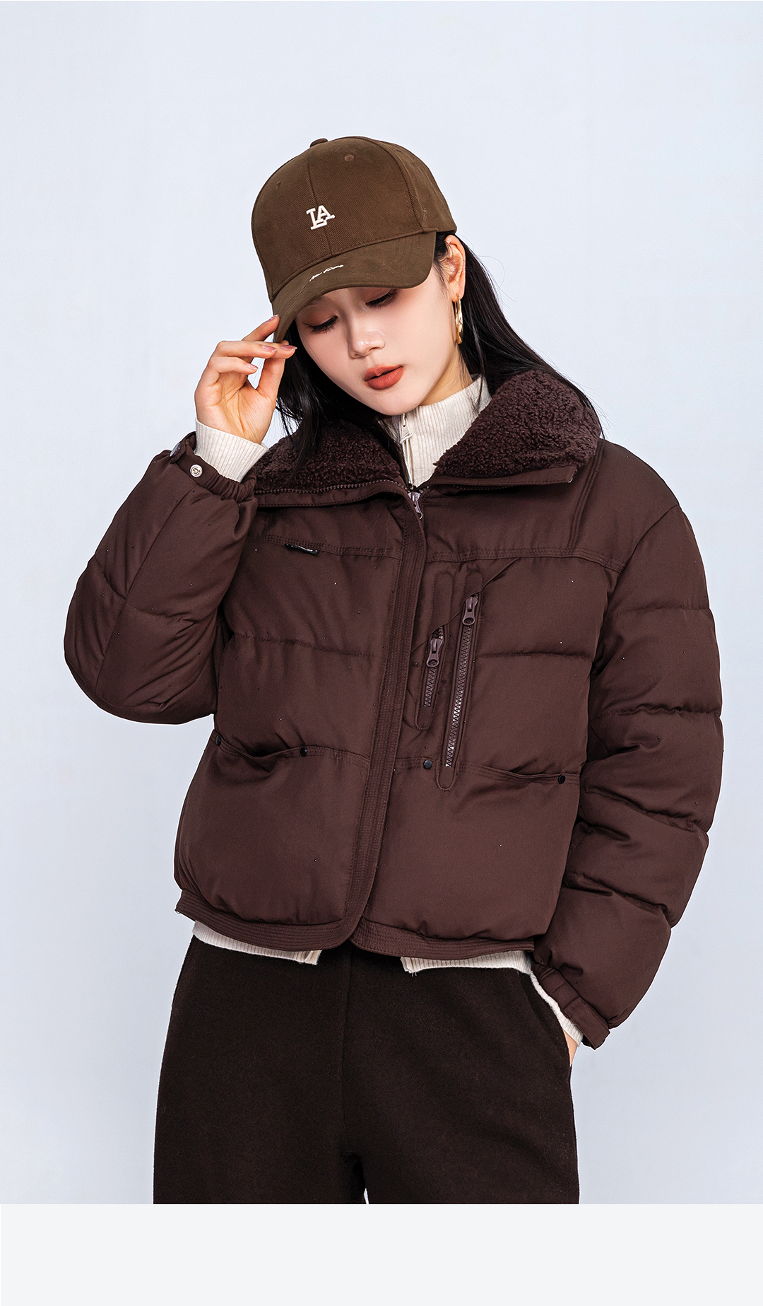 冬上新咖色短款羽绒服羊羔毛翻领加厚保暖棉外套2254218