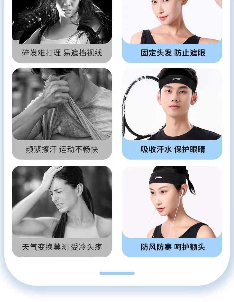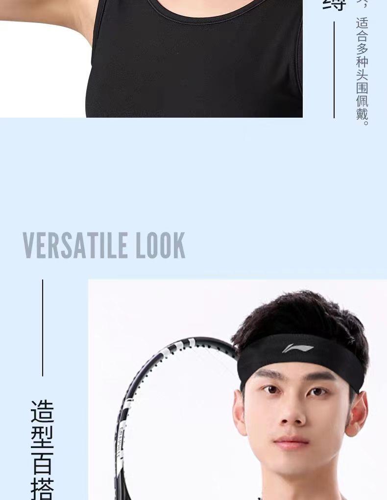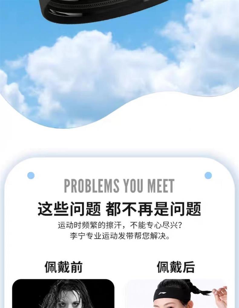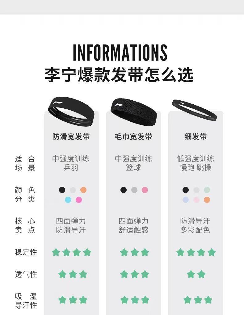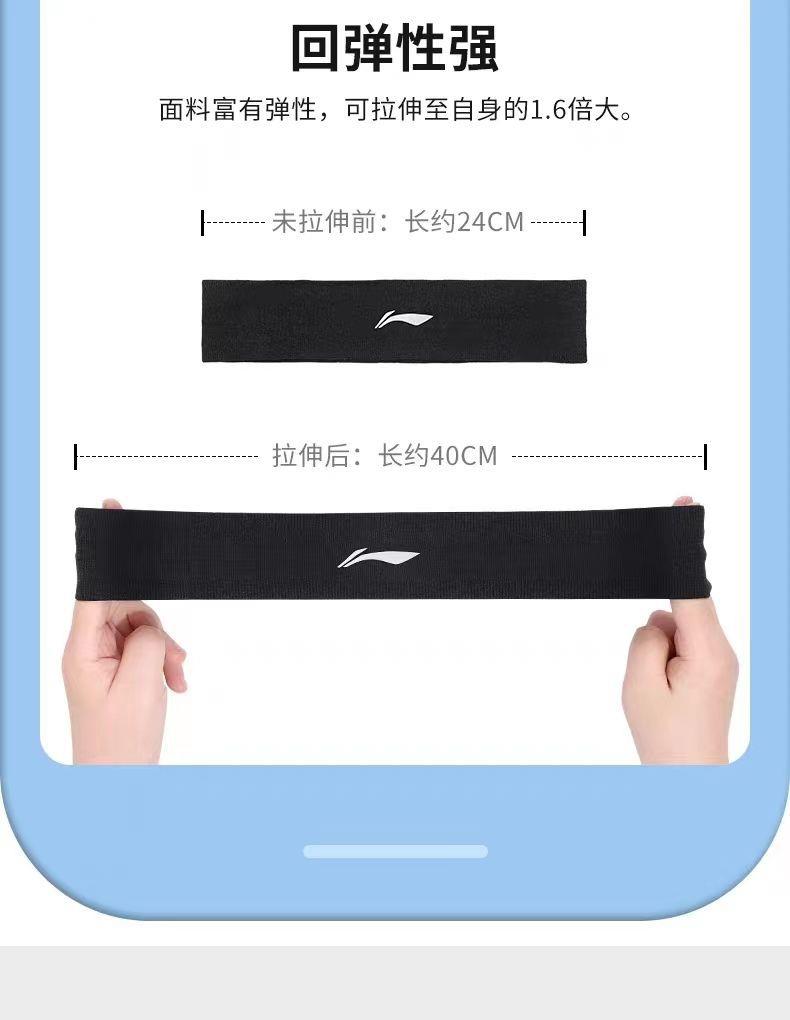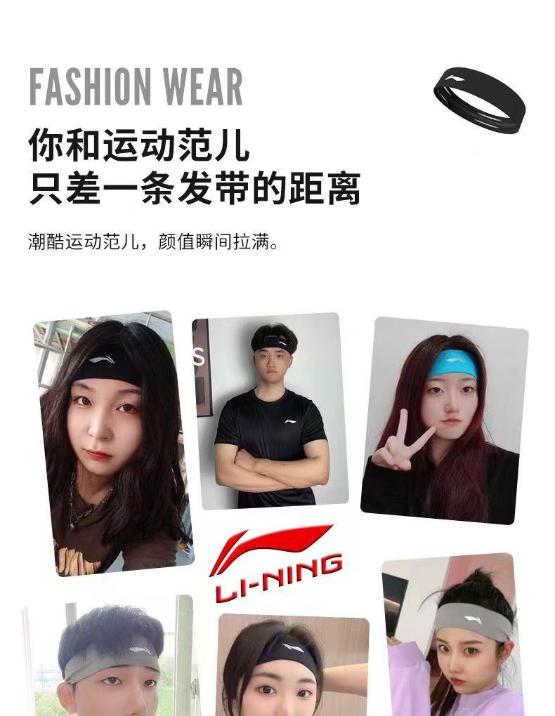 李宁运动发带男跑步健身吸汗头巾篮球瑜伽束发女防滑落止汗头巾