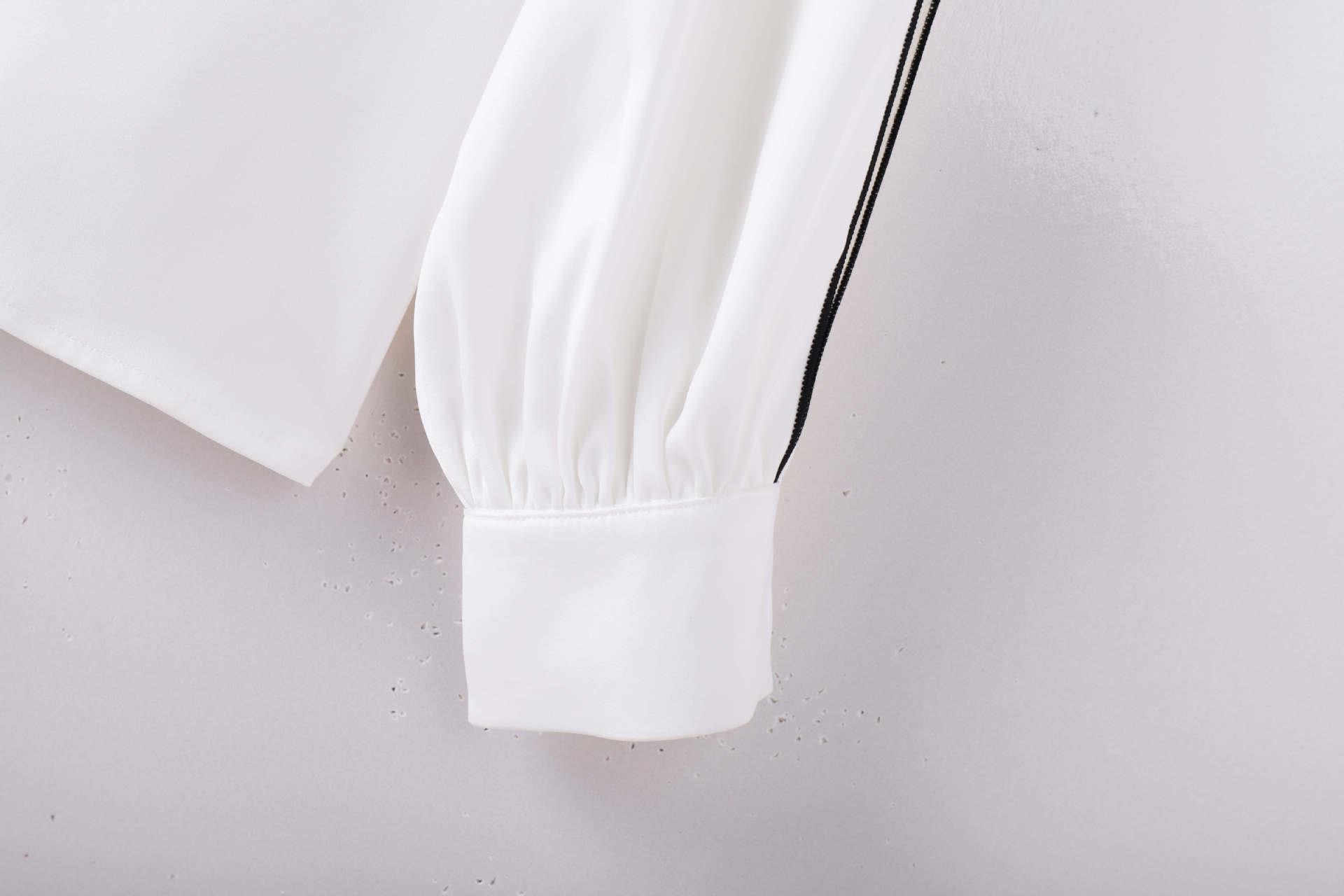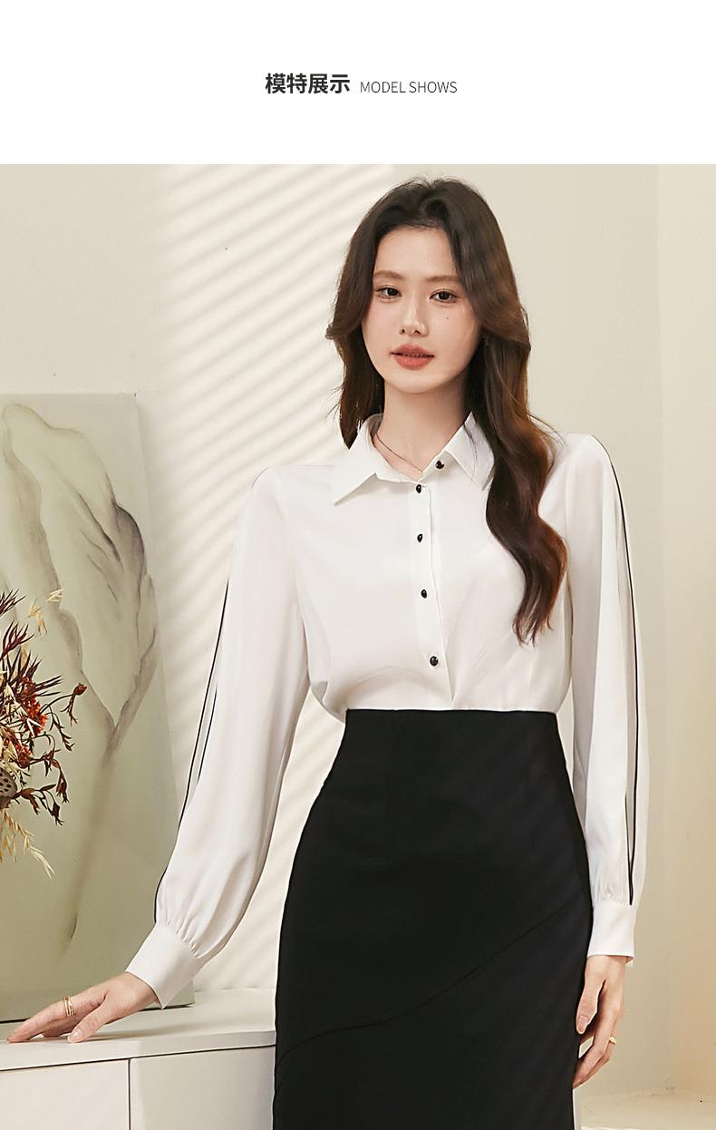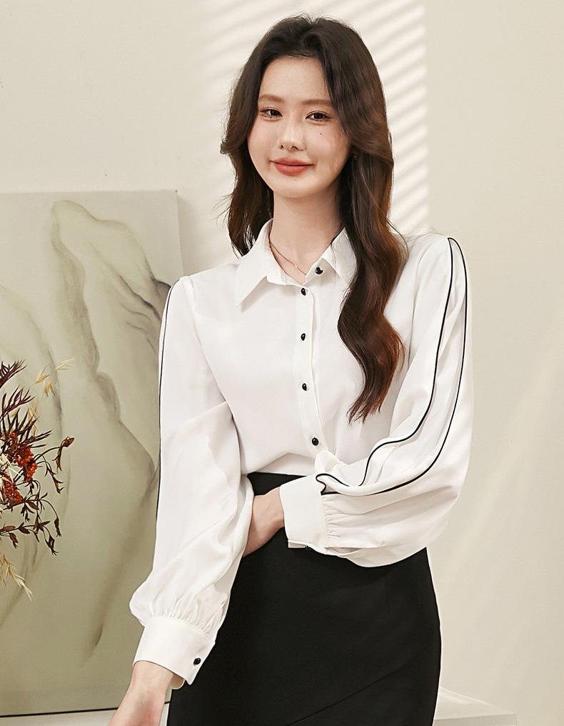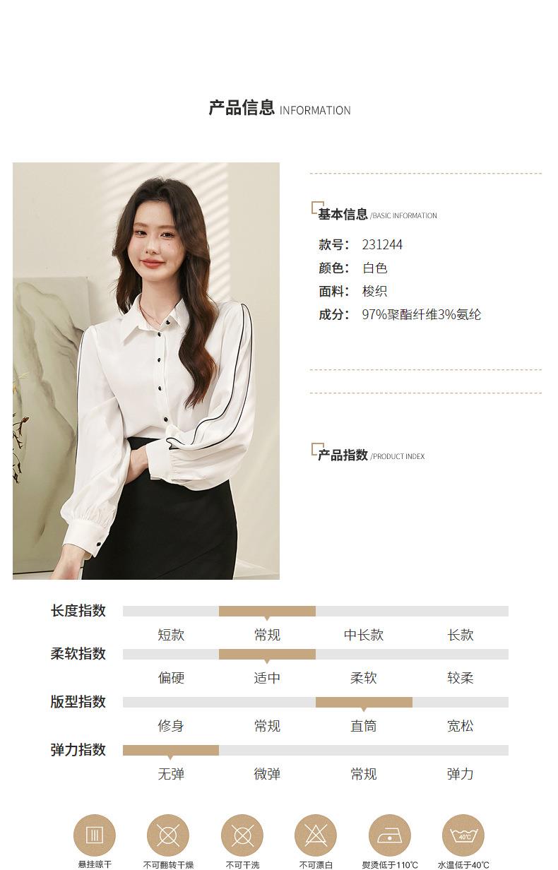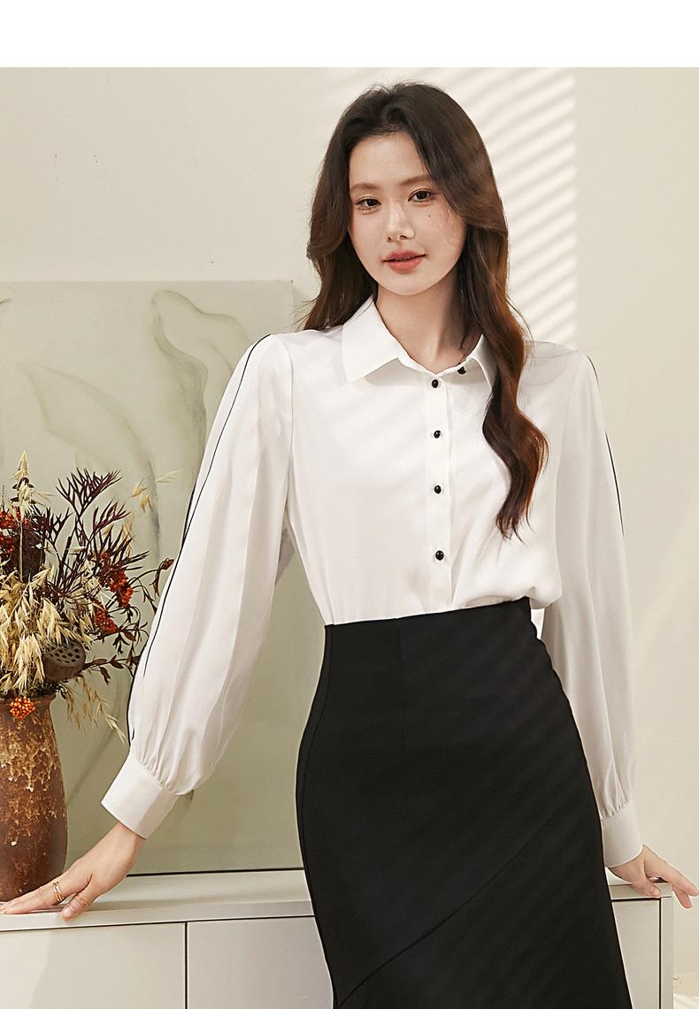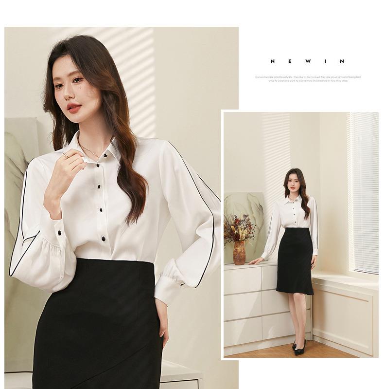 百姿 撞色灯笼袖长袖衬衫女2023秋季新款优雅宽松百搭上衣231244