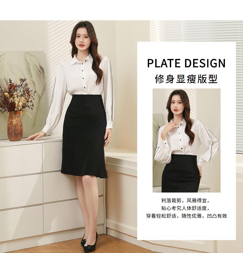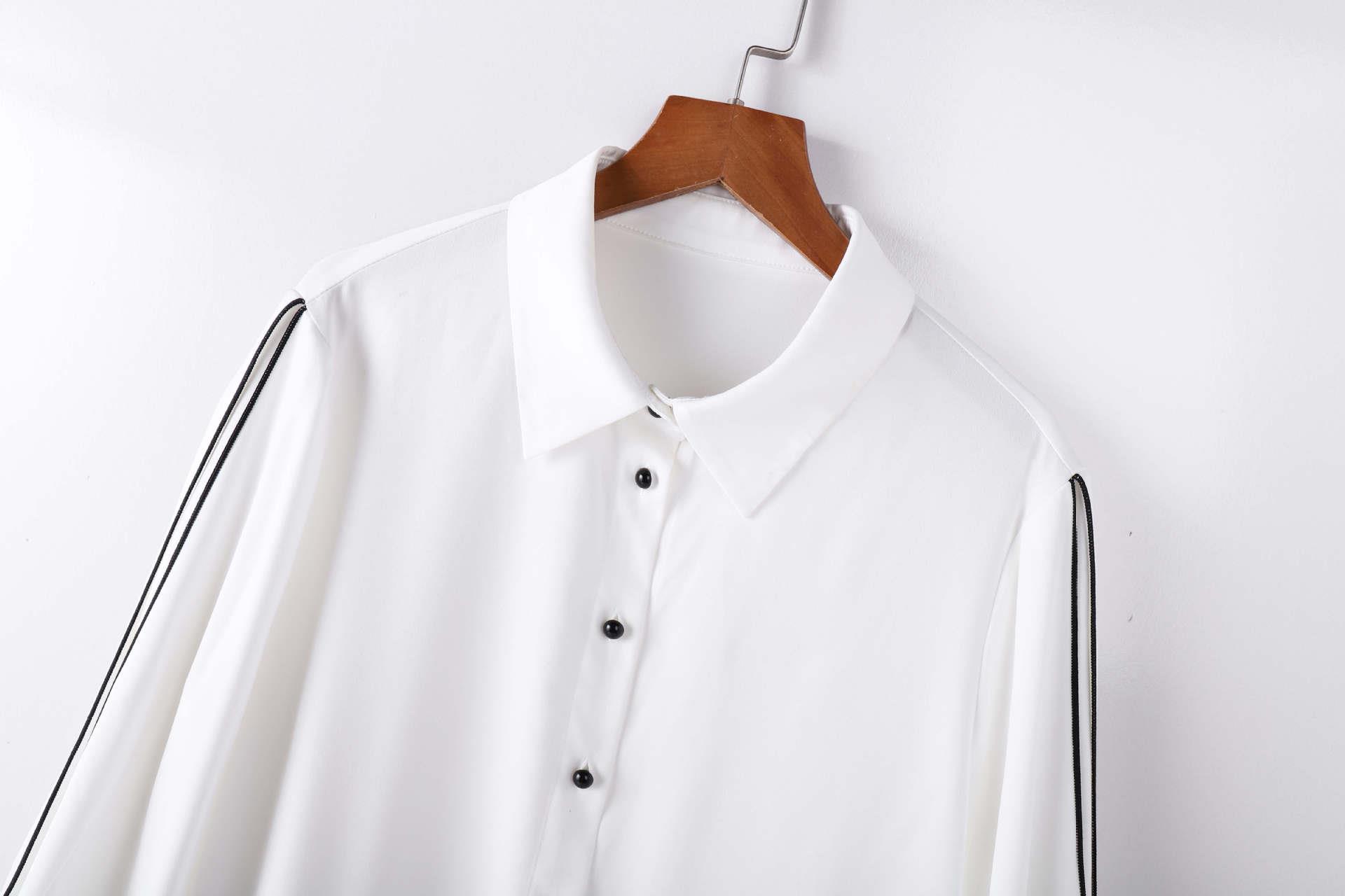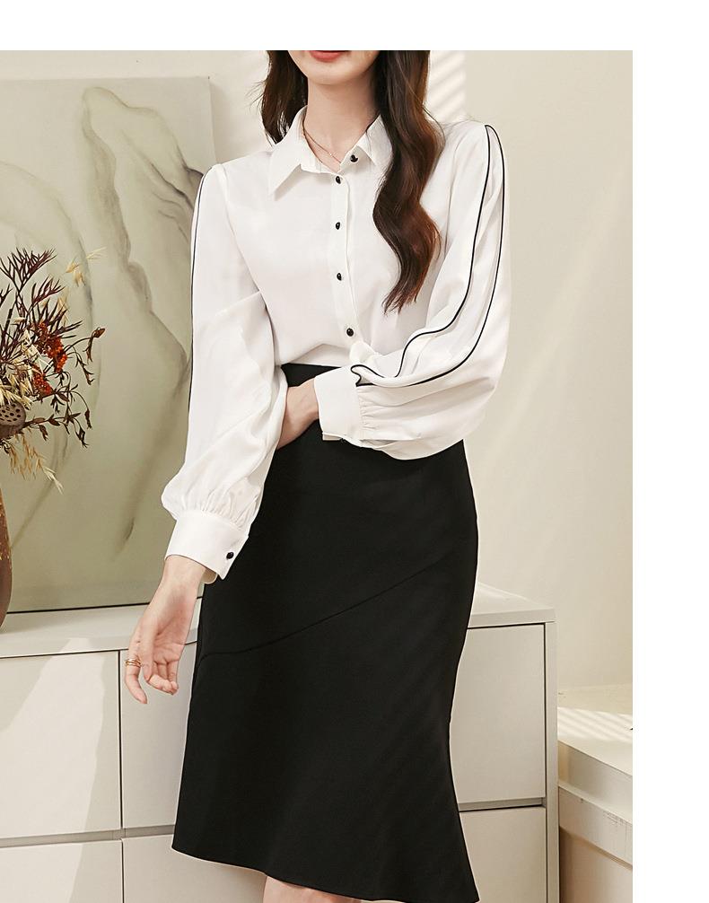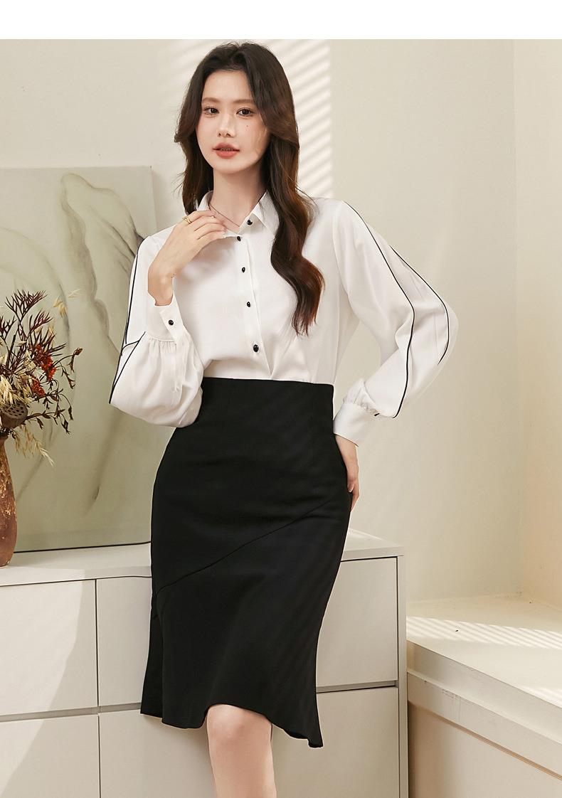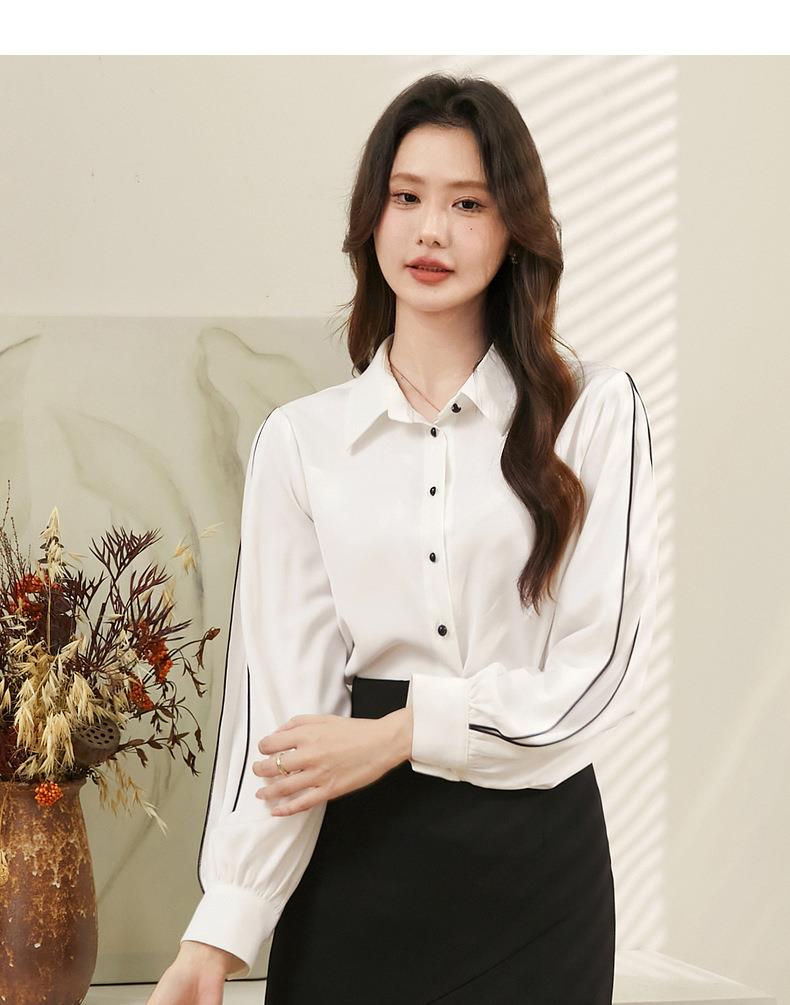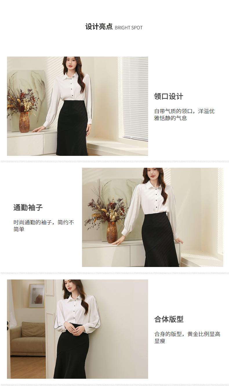百姿 撞色灯笼袖长袖衬衫女2023秋季新款优雅宽松百搭上衣231244