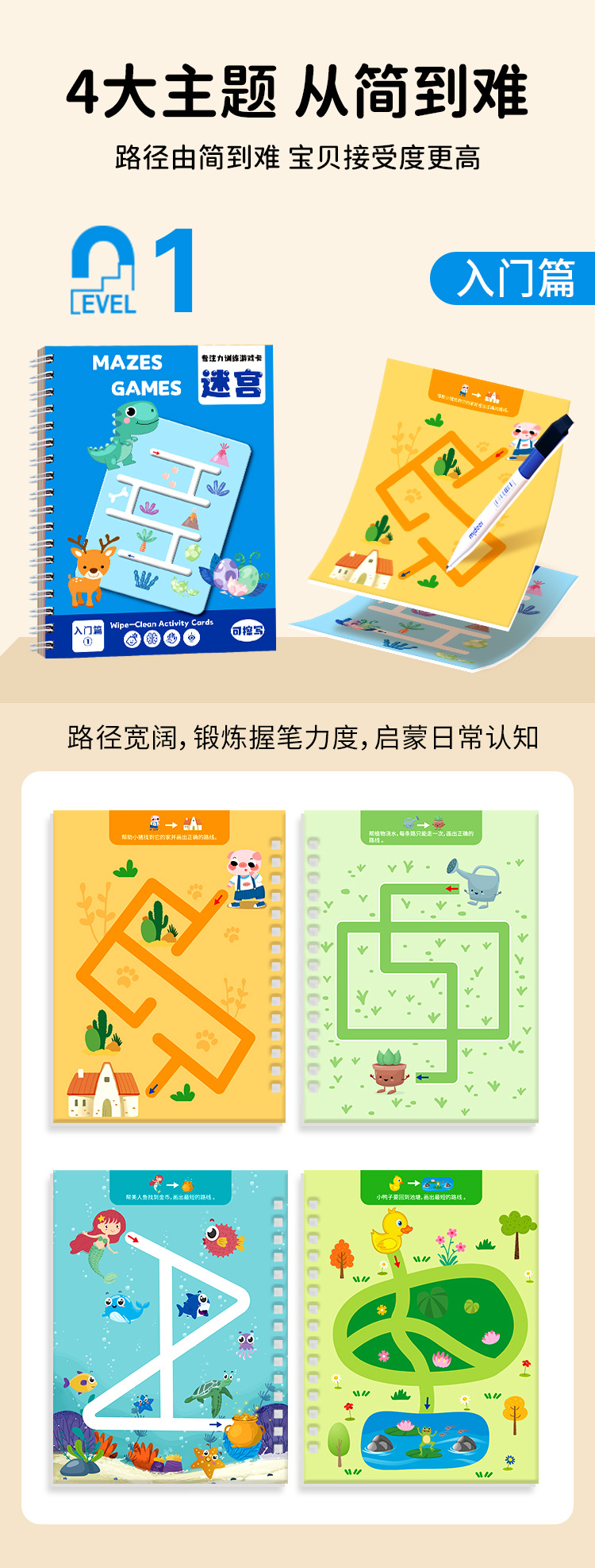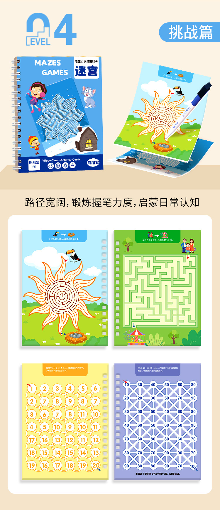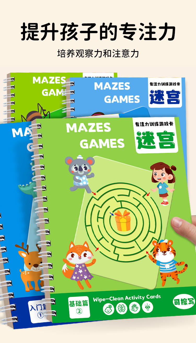 【专注力训练卡4套装 培养孩子专注力】走迷宫专注力训练 儿童益智玩具 幼儿控笔智力思维闯关游戏3岁
