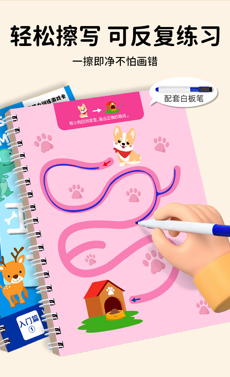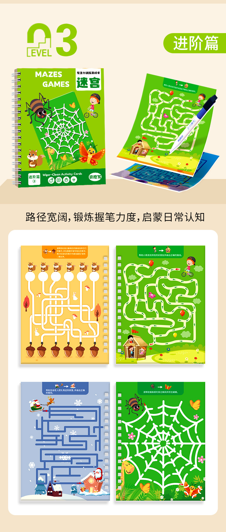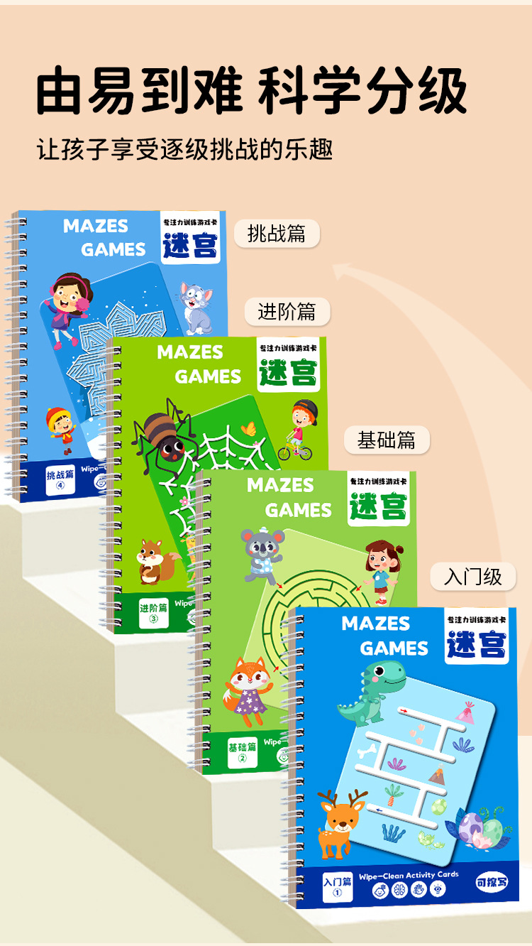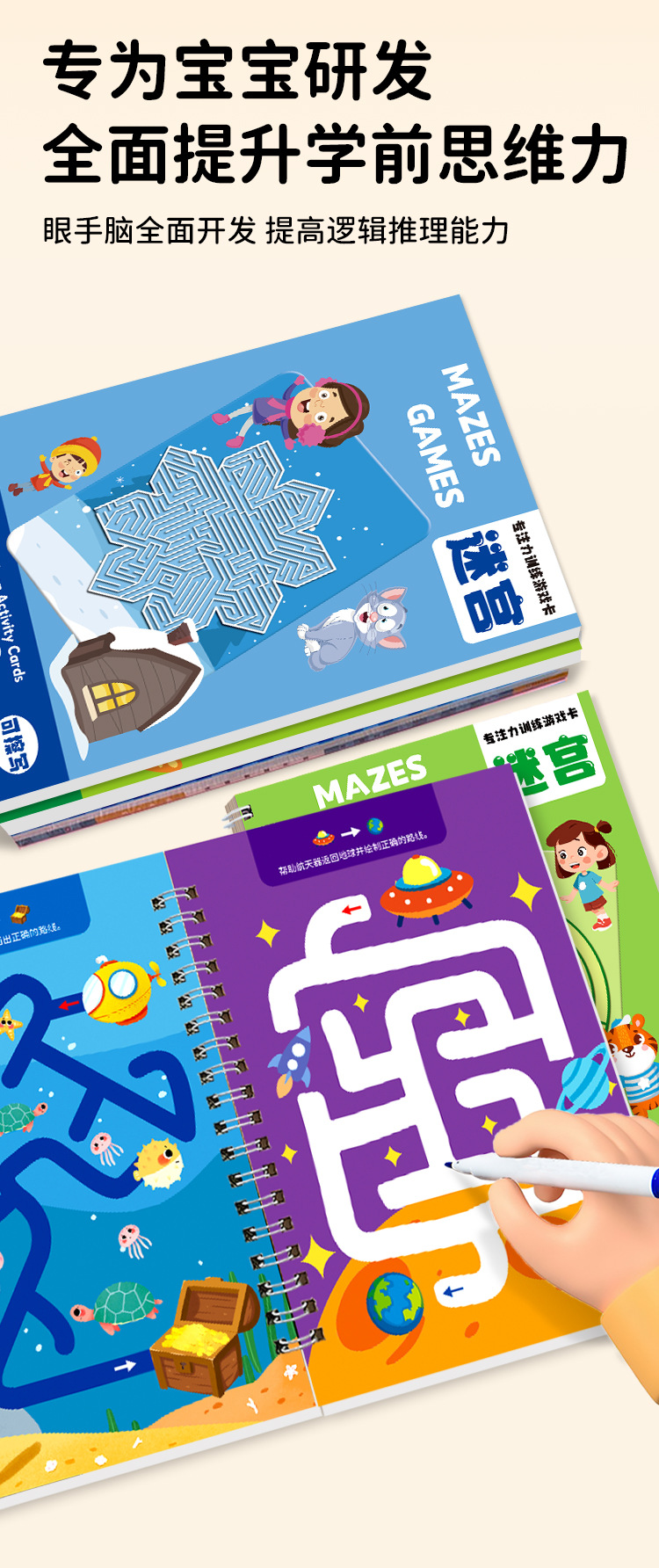 【专注力训练卡4套装 培养孩子专注力】走迷宫专注力训练 儿童益智玩具 幼儿控笔智力思维闯关游戏3岁
