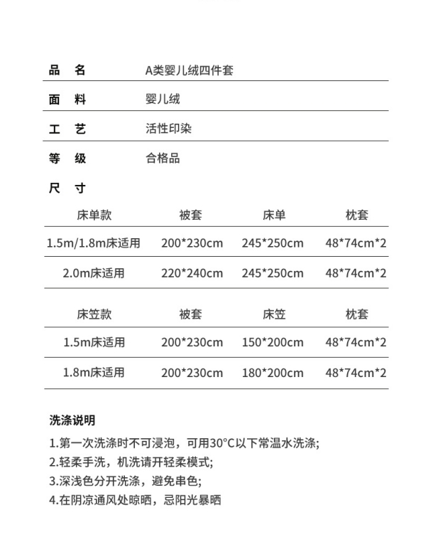A类婴儿绒刺绣保暖四件套G117900048