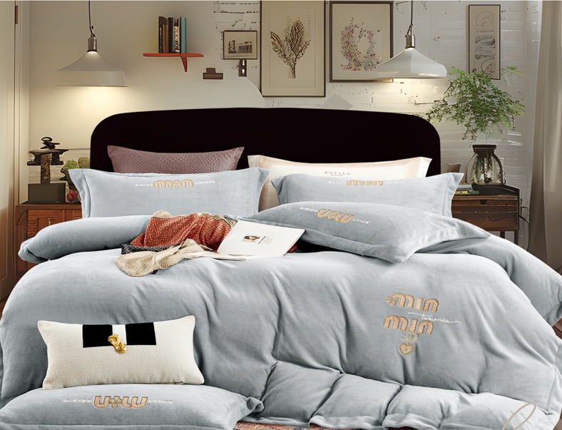 甄选冬季加厚保暖轻奢刺绣艾伦牛奶绒床上用品四件套G117800036