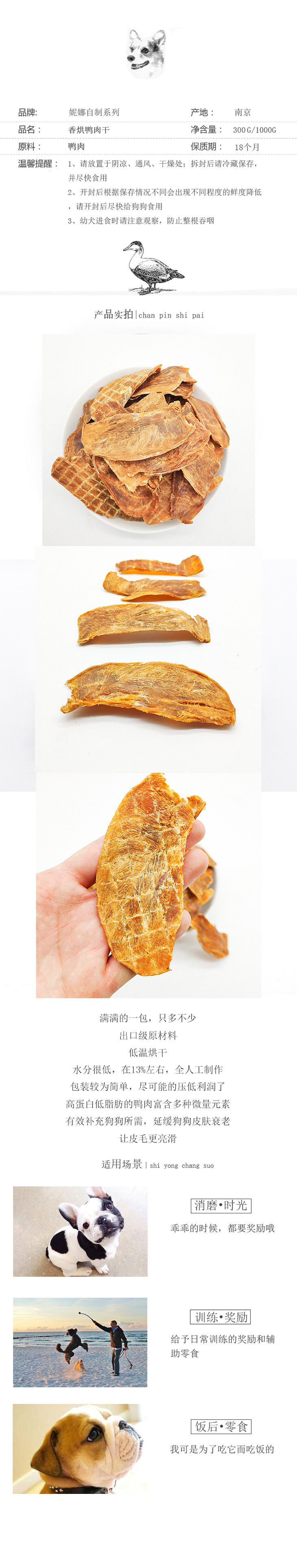 妮娜厨房手工系列 鸭肉薄片鸭肉干鸭胸肉 猫狗通用