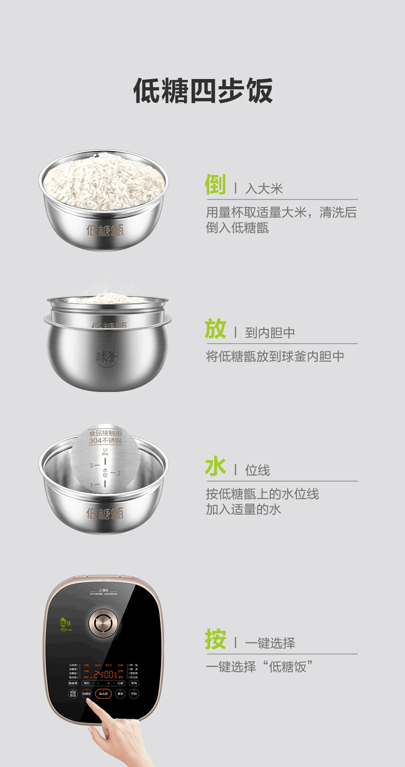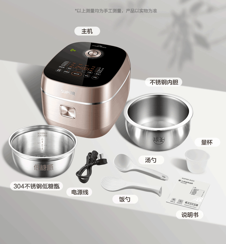 苏泊尔(SUPOR)ZMD安心系列触控面板1300W大火力多功能智能家用微坑点阵内胆柴火饭4L大容量IH低糖饭煲SF40HC1904