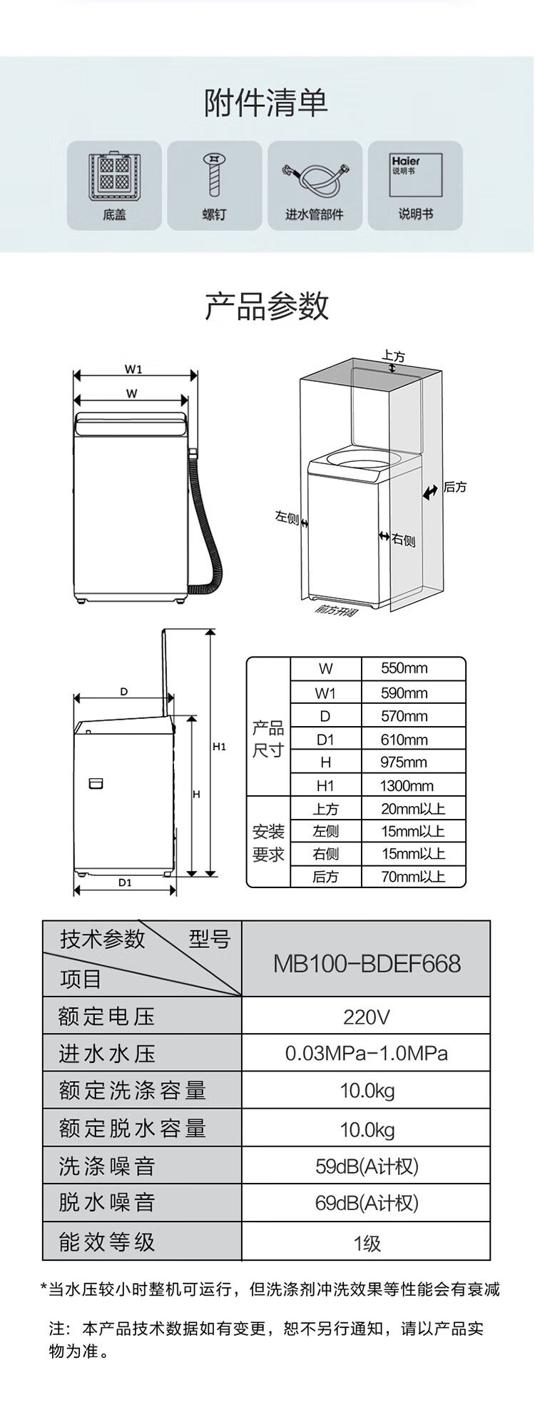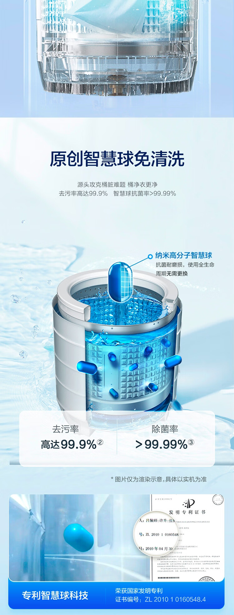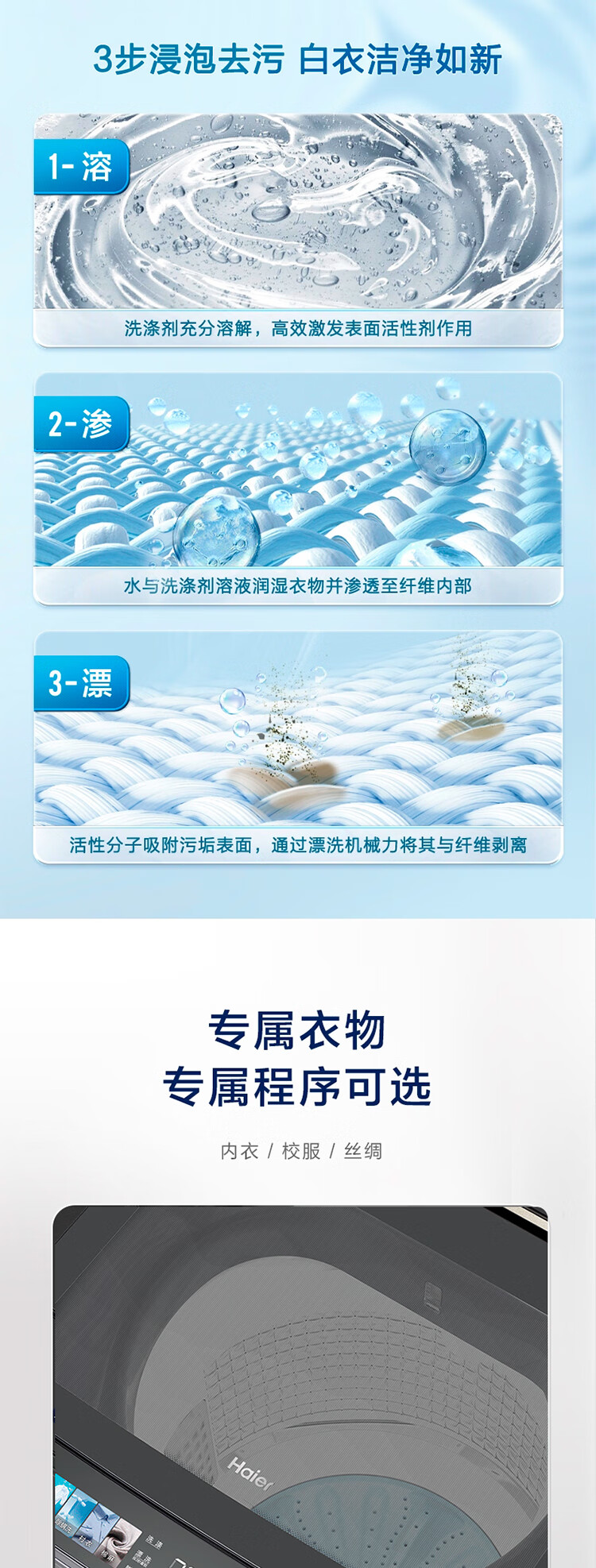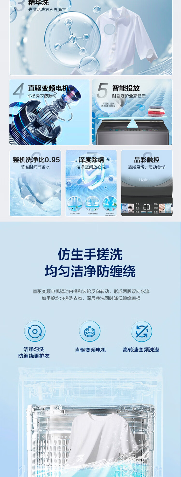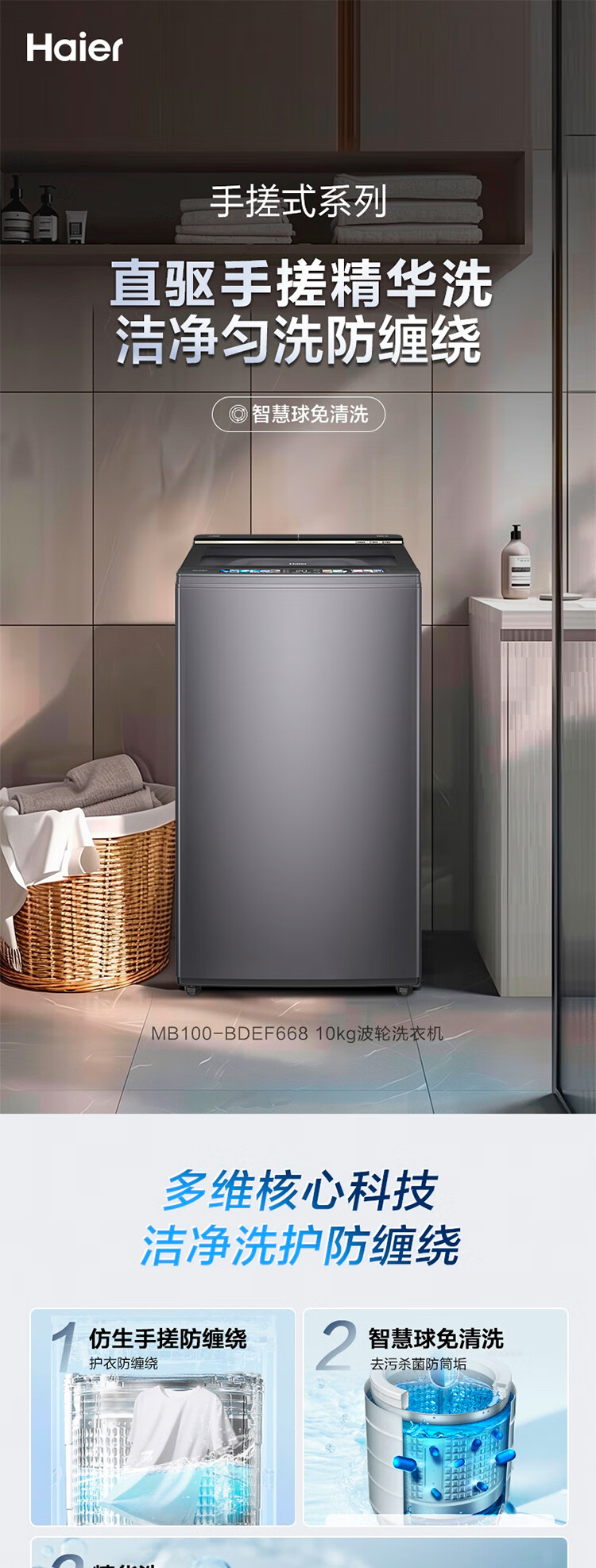 海尔云溪免清洗直驱变频洗衣机精华洗智能投放10公斤全自动波轮手搓防缠绕 【星蕴银】免清洗MB100-BDEF668