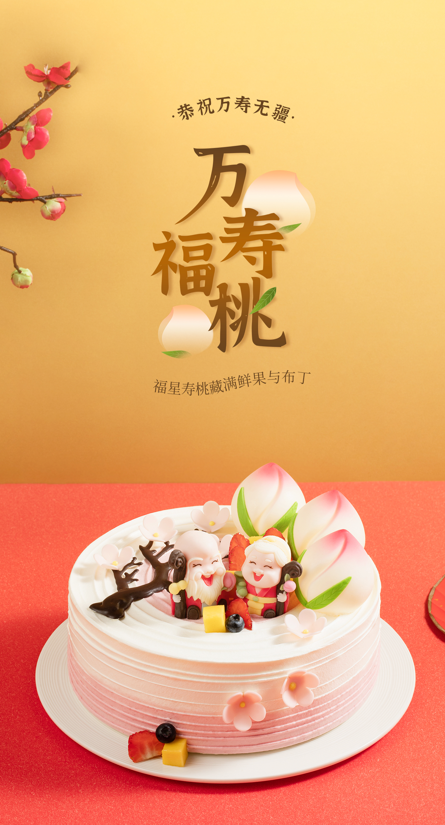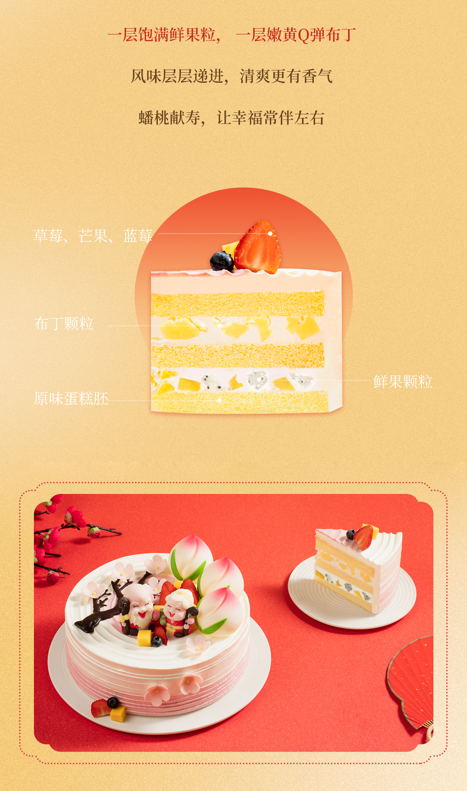 【送老人推荐】万寿福桃祝寿蛋糕,福星寿桃藏满鲜果与布丁,恭祝万寿无疆