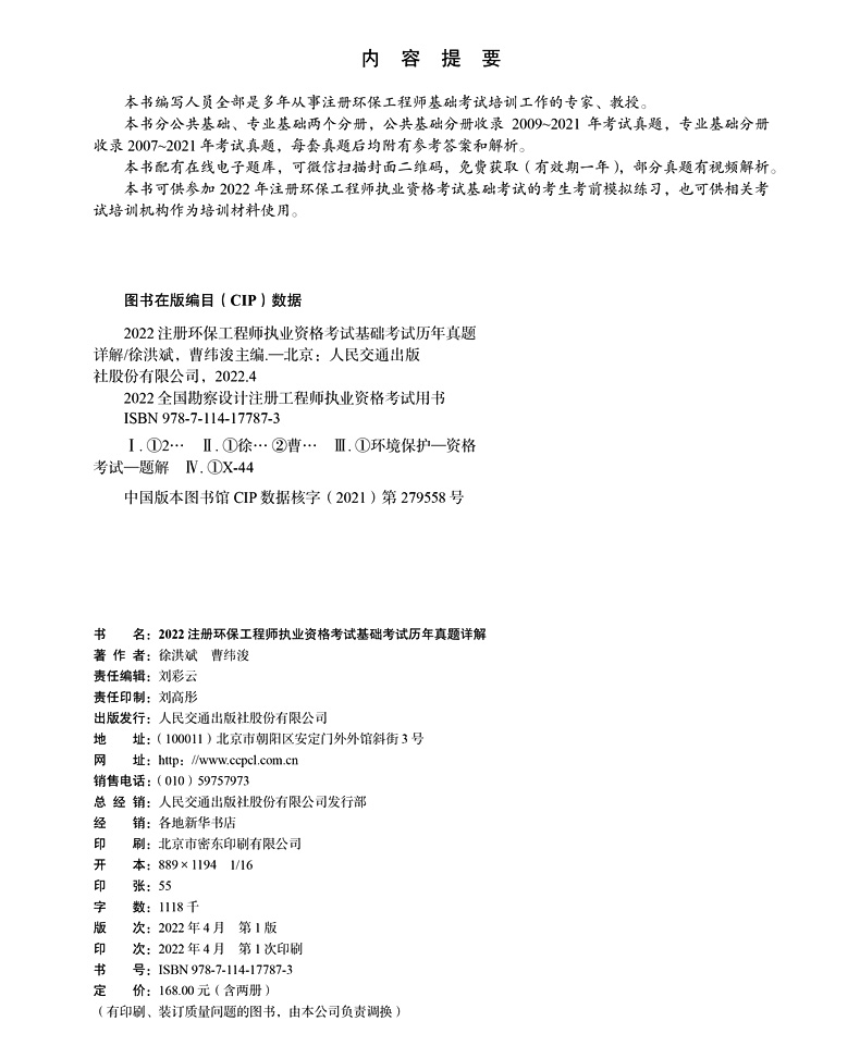 书名:2022注册环保工程师执业资格考试基础考试历年真题详解