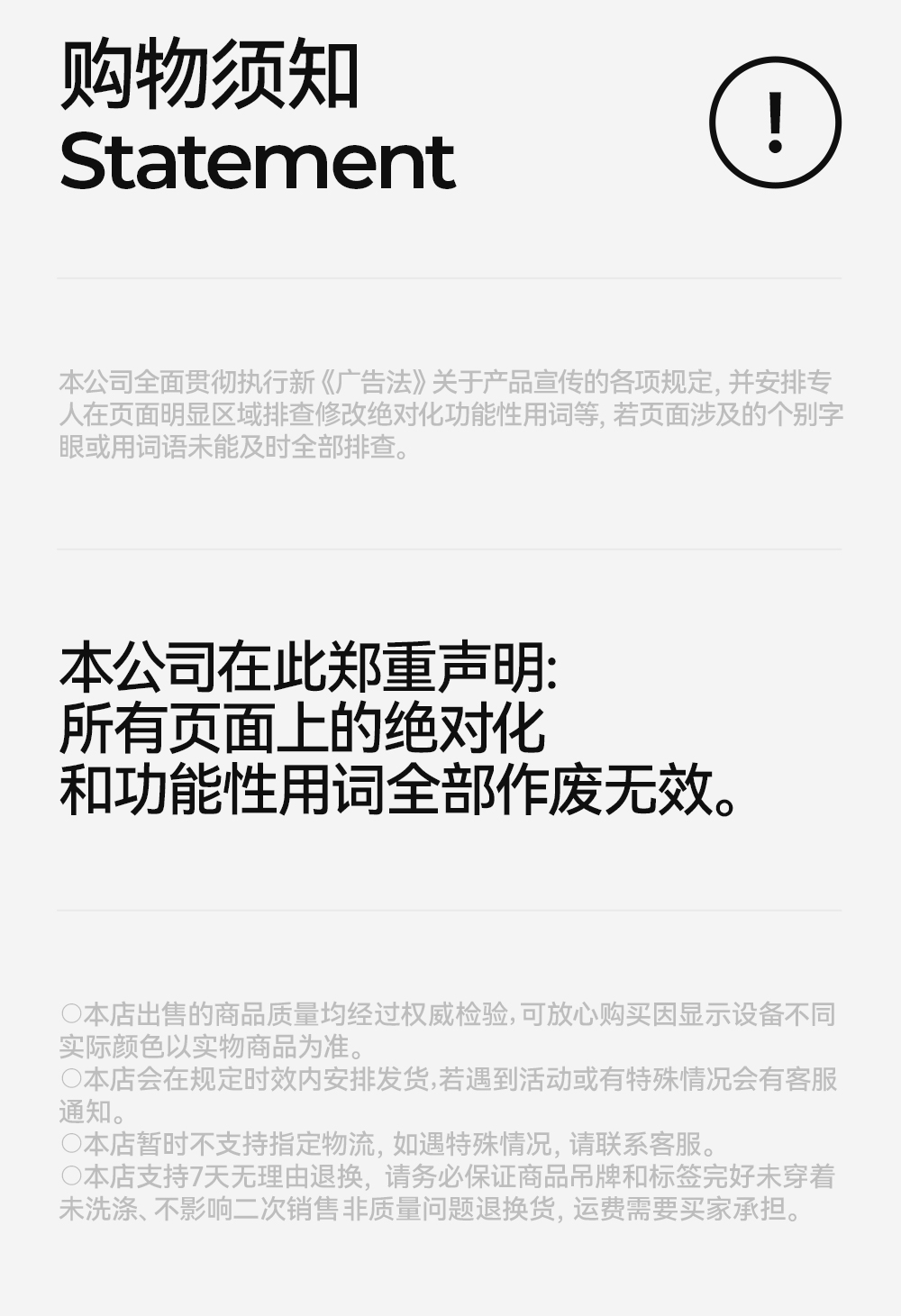 四、退换货及售后政策:非质量问题不影响二次销售的商品支持七天无理由退换货,买家承担运费自行寄回;收到商品有任何质量问题请联系我们处理售后