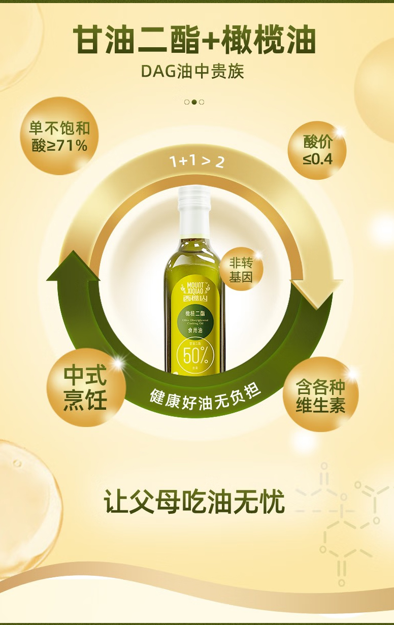 【月满家和】西樵山橄榄二酯食用油 500ml/瓶(二脂油含量50%)(包邮直发)(ZB)