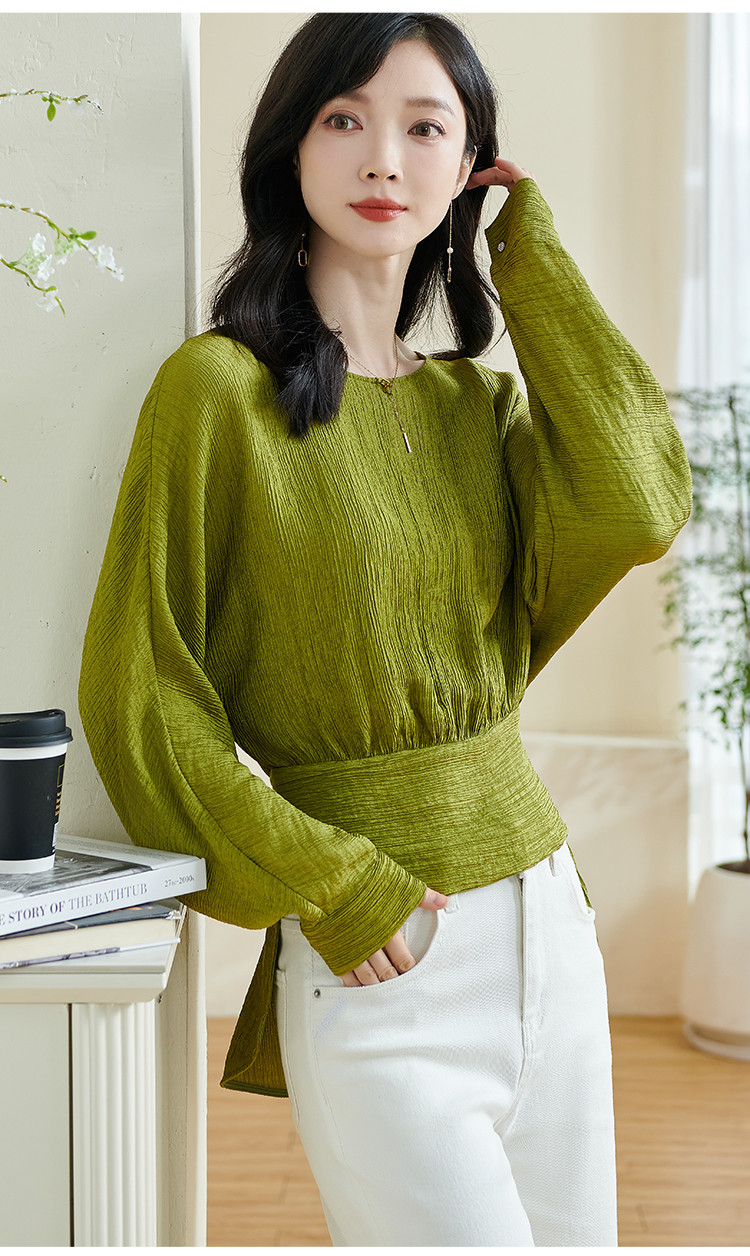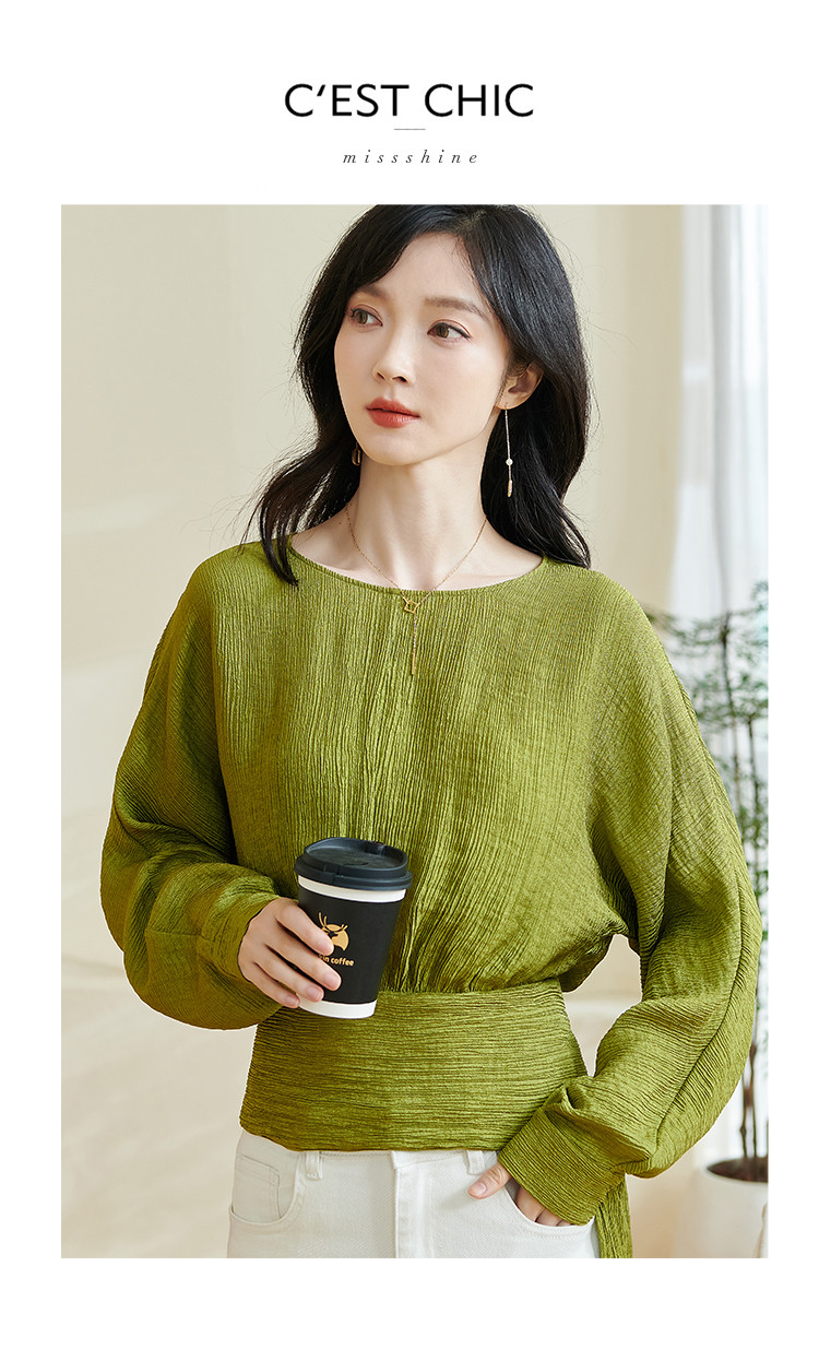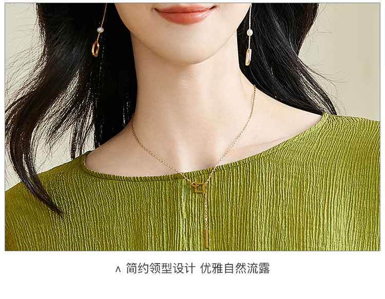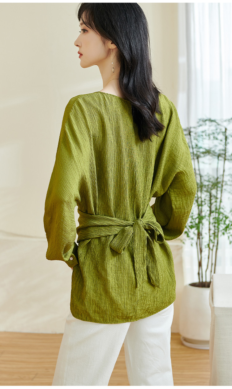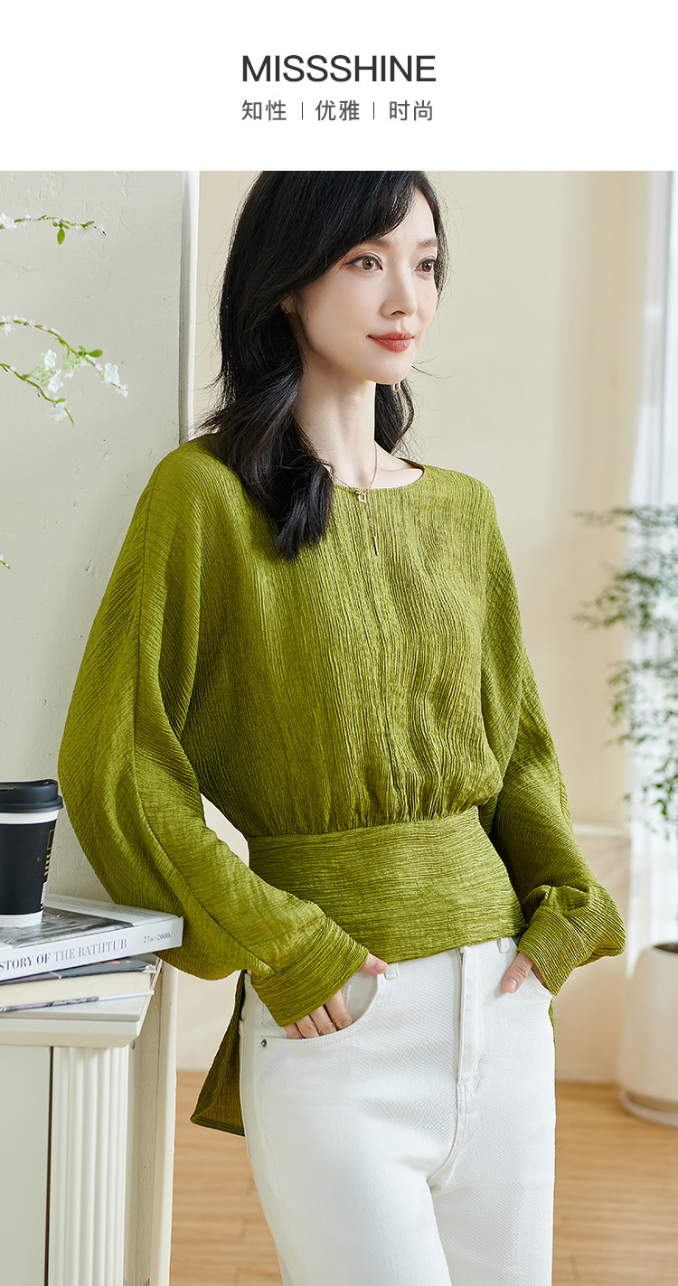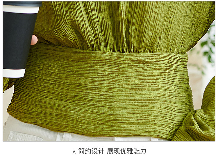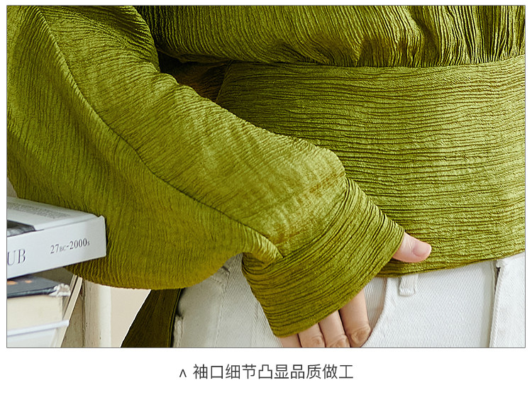 米思阳2026春季新款优雅别致肌理感衬衫蝴蝶结修身绿色上衣女0460