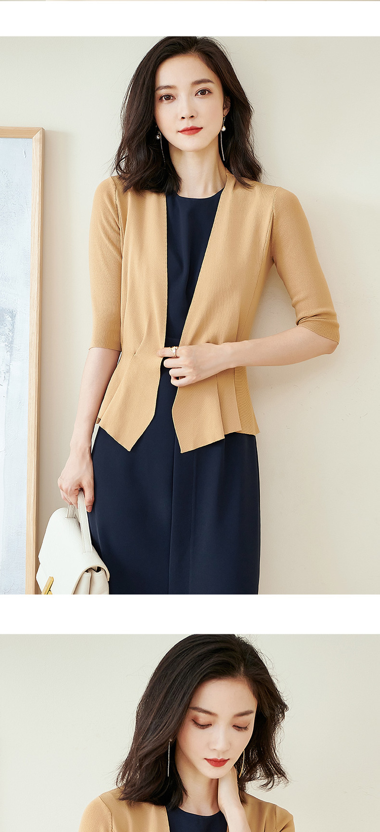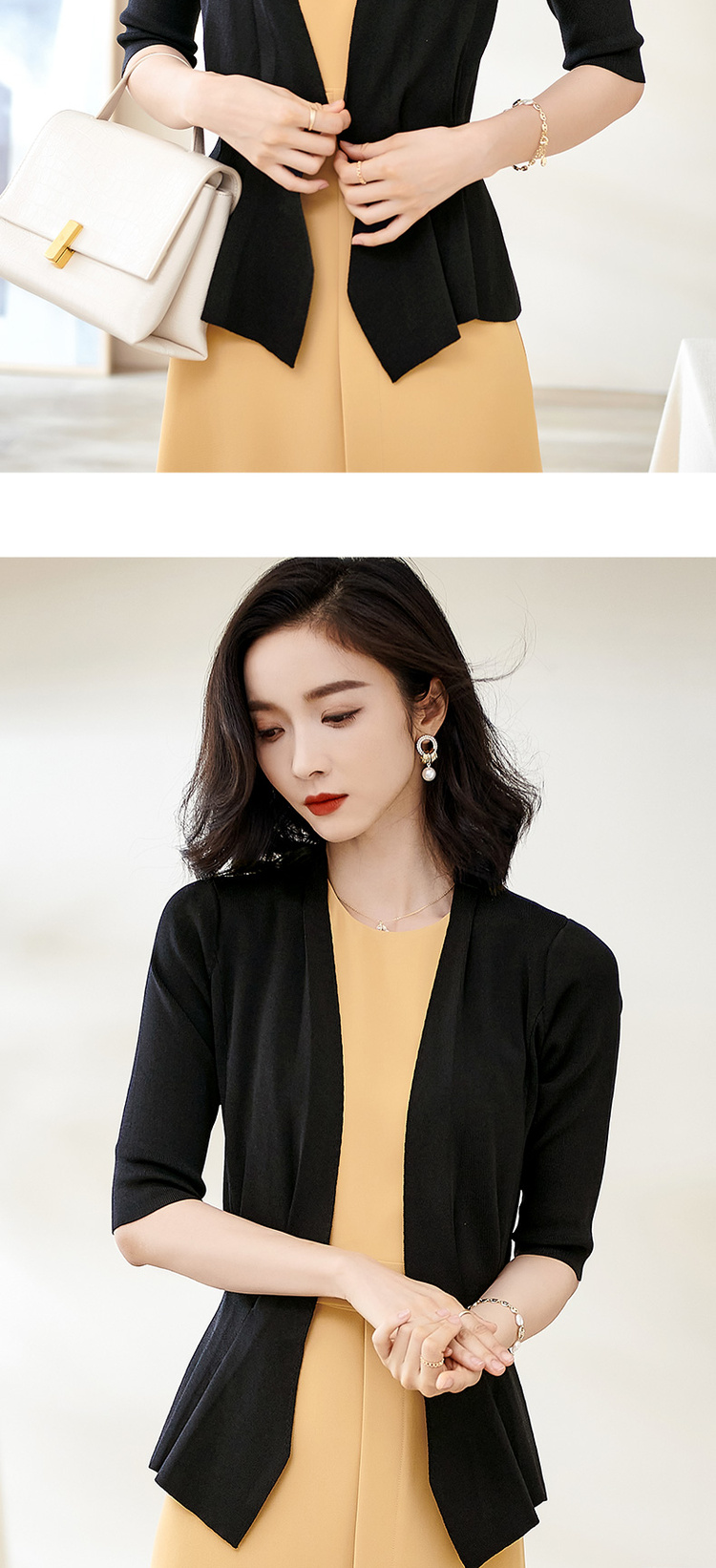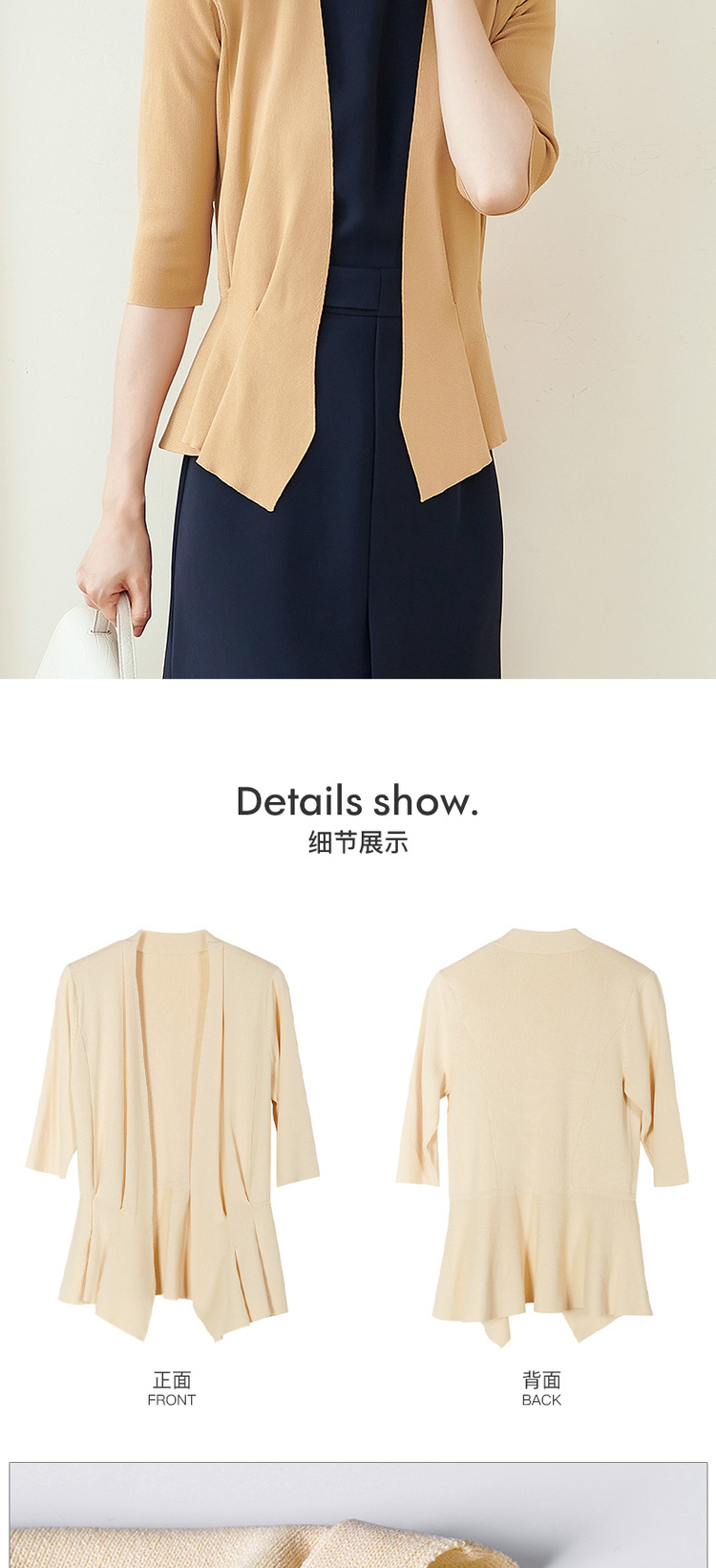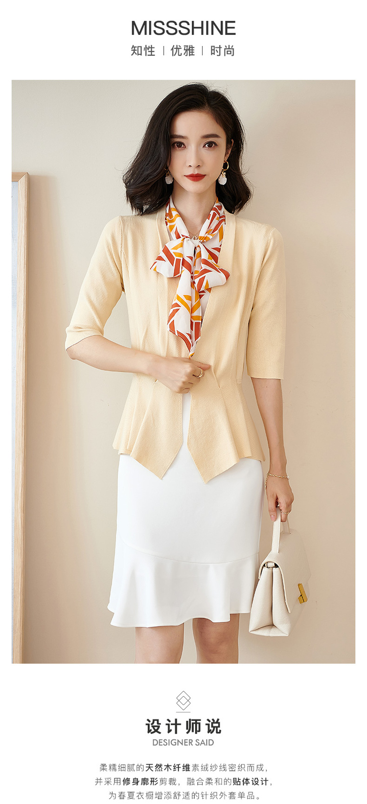 米思阳春季新款简约气质修身不规则裙摆针织开衫短外套女2150