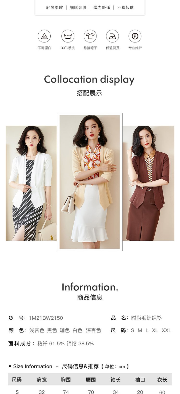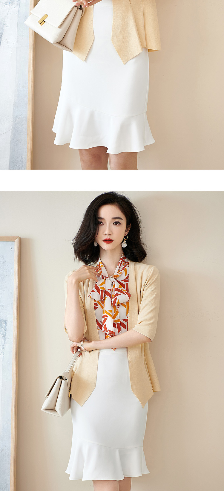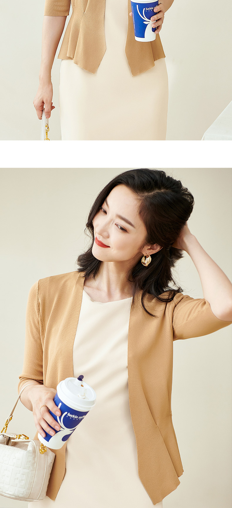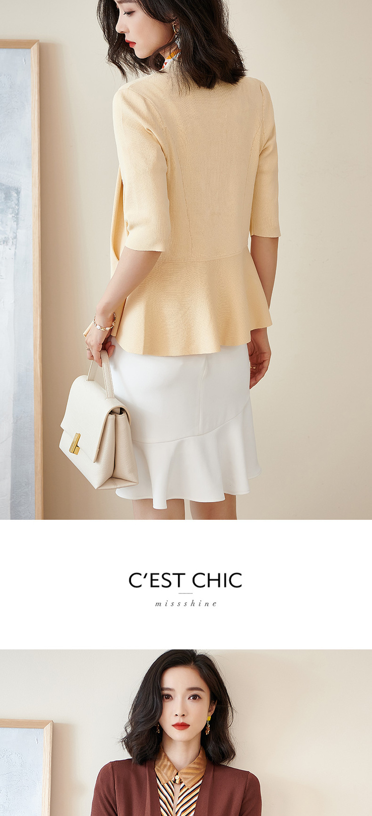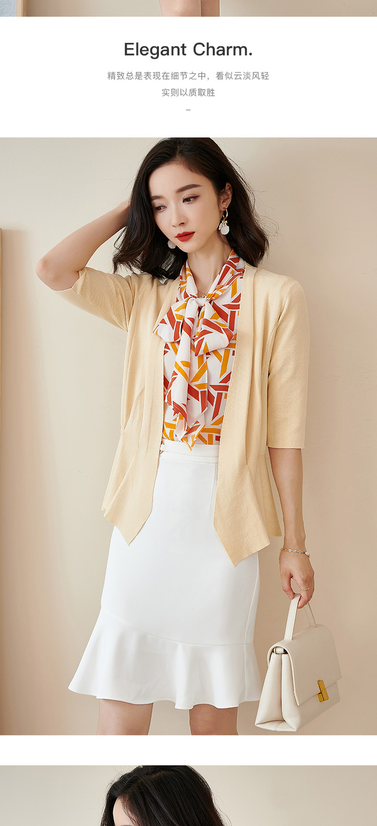 米思阳春季新款简约气质修身不规则裙摆针织开衫短外套女2150
