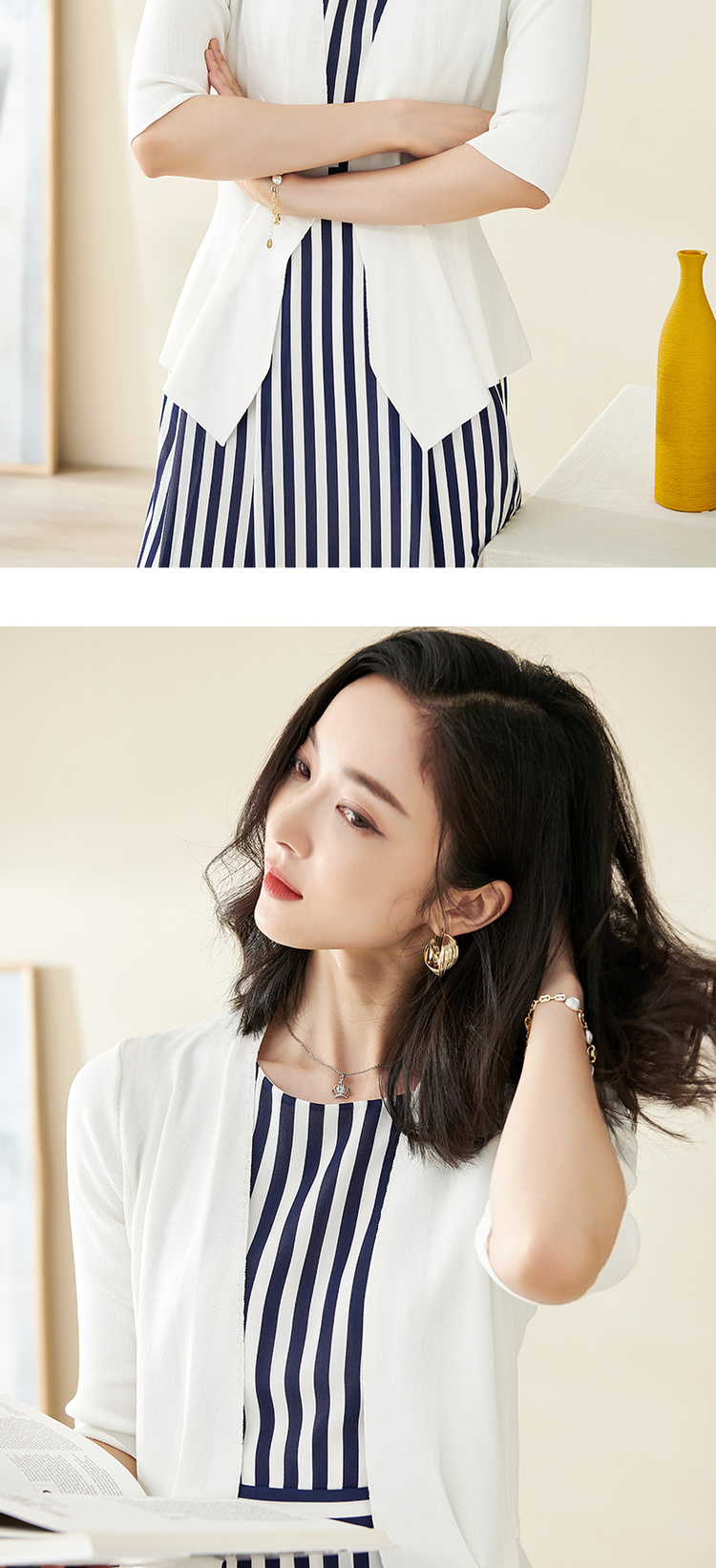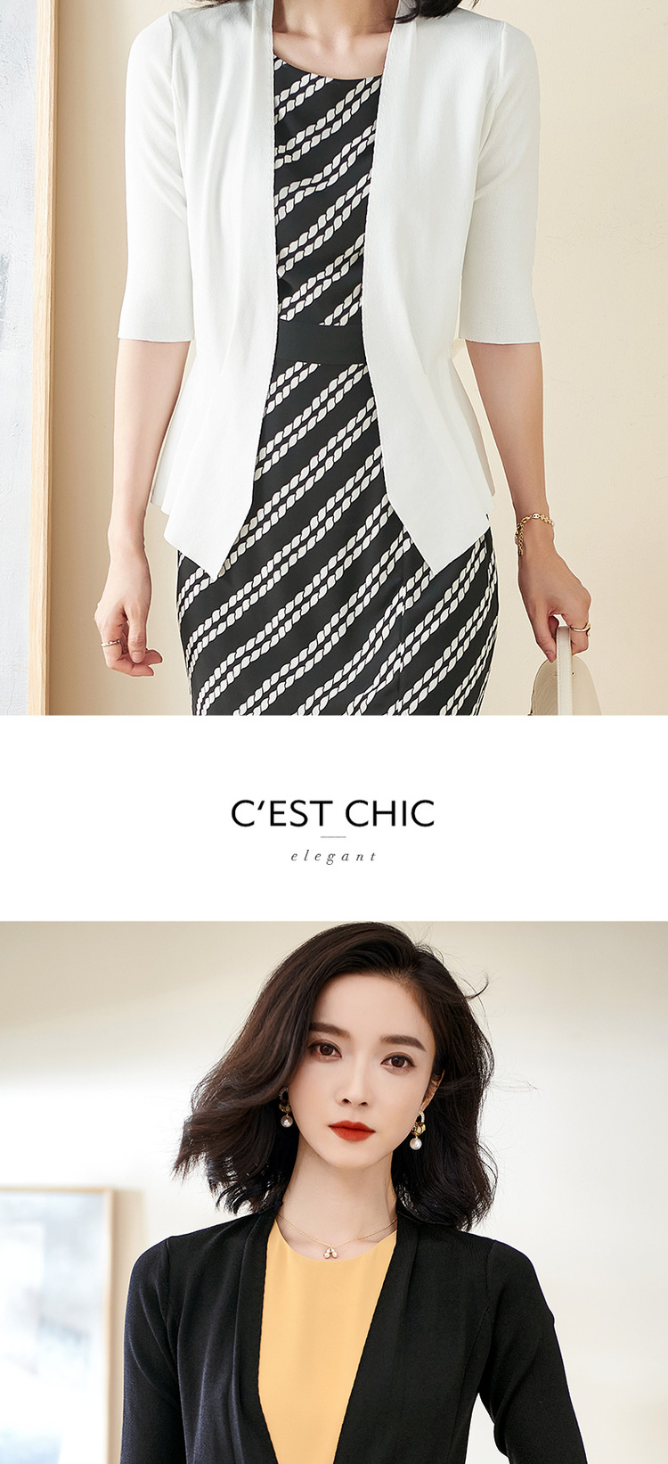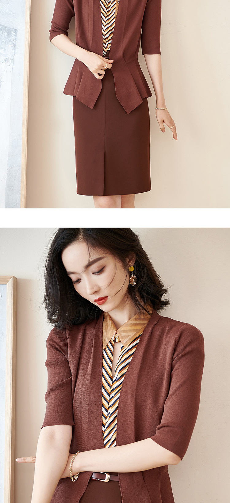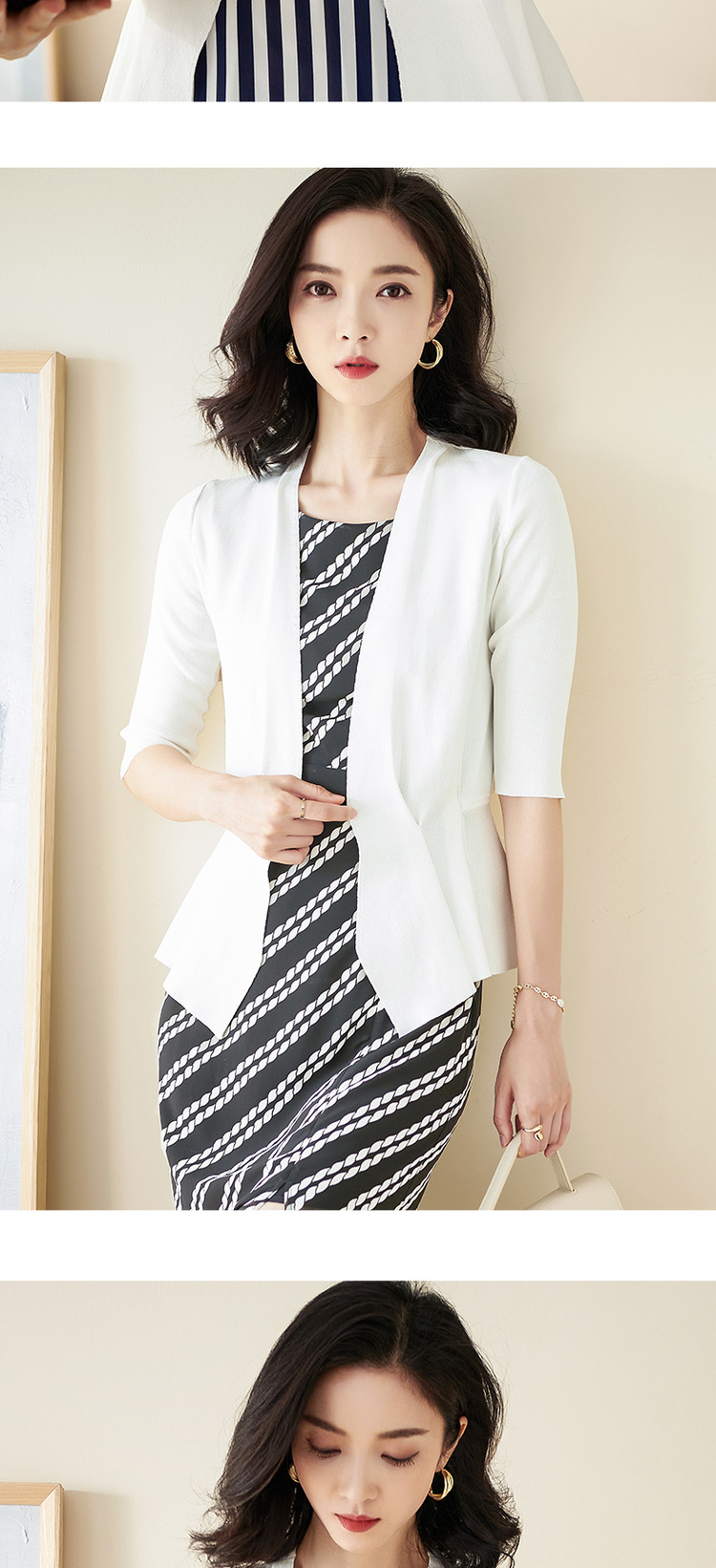 米思阳春季新款简约气质修身不规则裙摆针织开衫短外套女2150