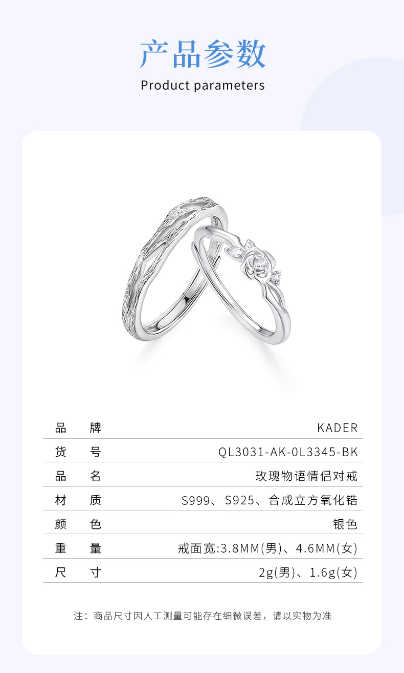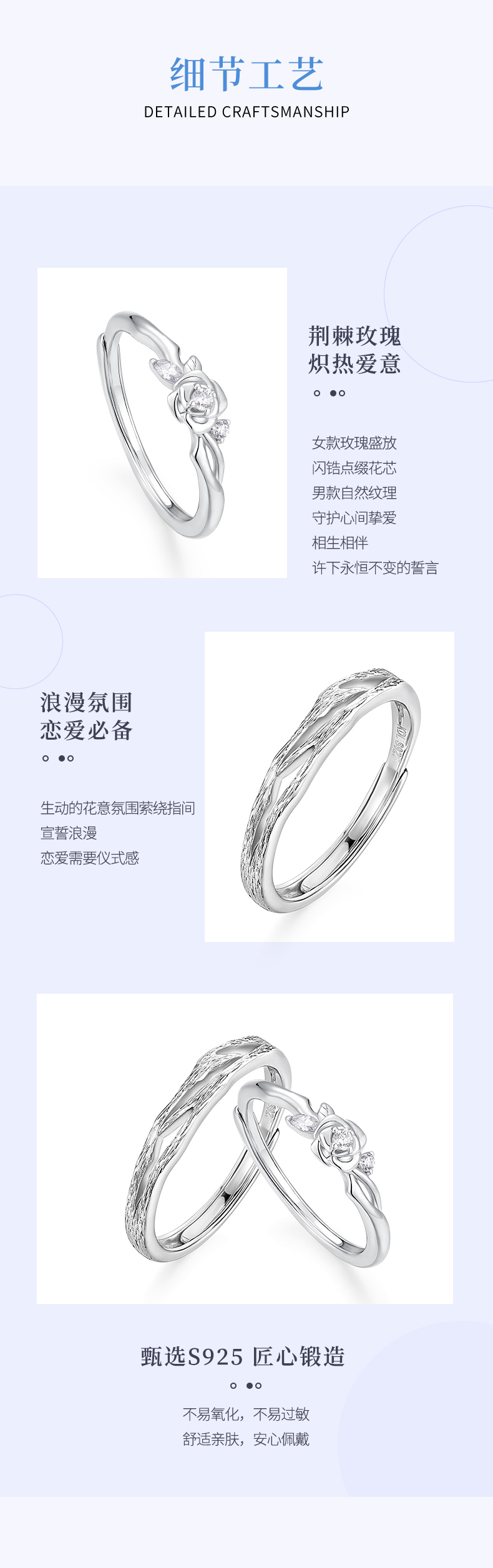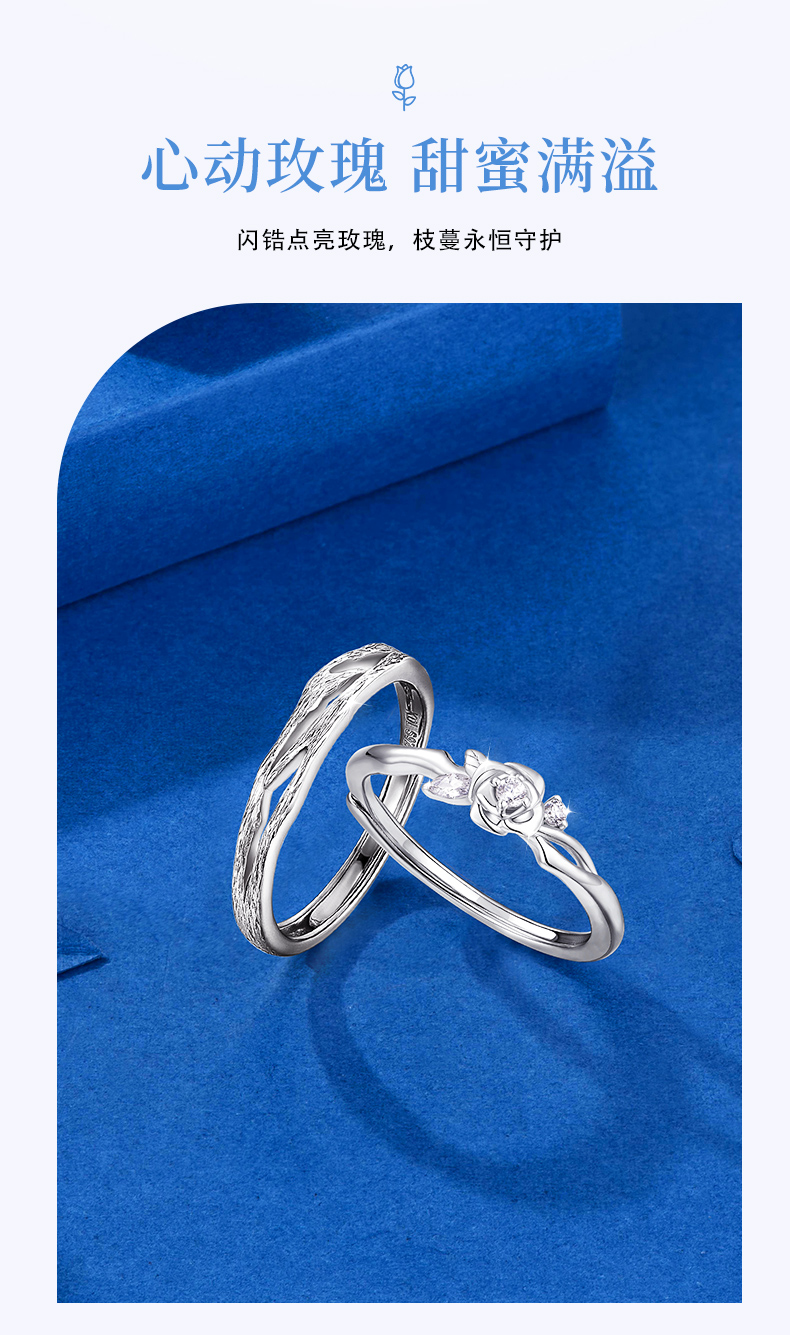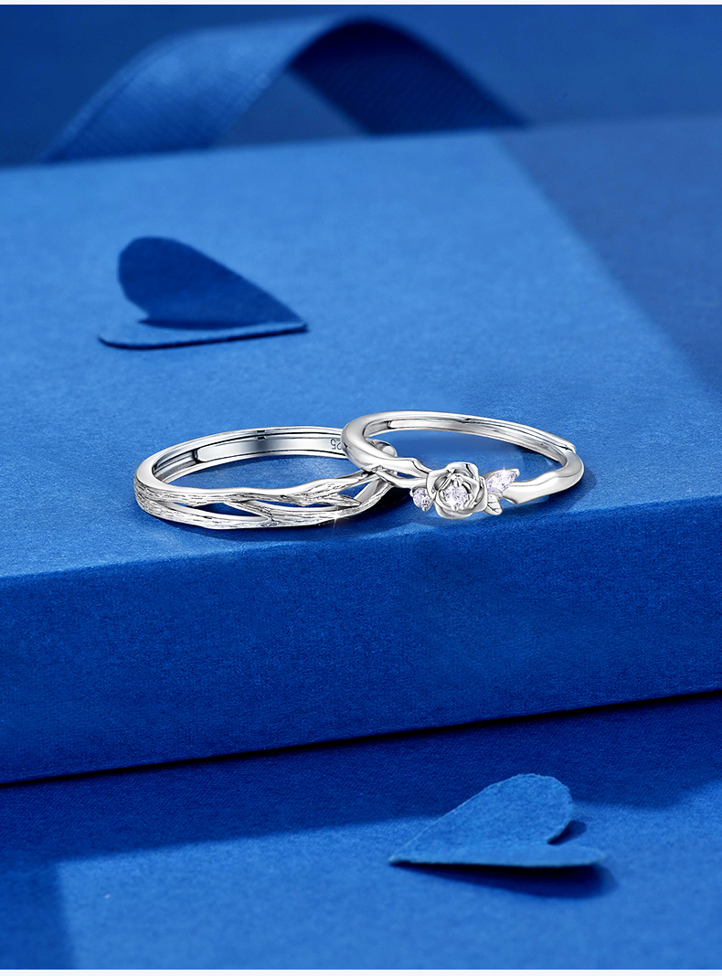 卡蒂罗/KADER 玫瑰物语情侣对戒 925银荆棘玫瑰热烈炽热开口可调节一对 浪漫氛围感恋爱必备配饰 女友520送女生