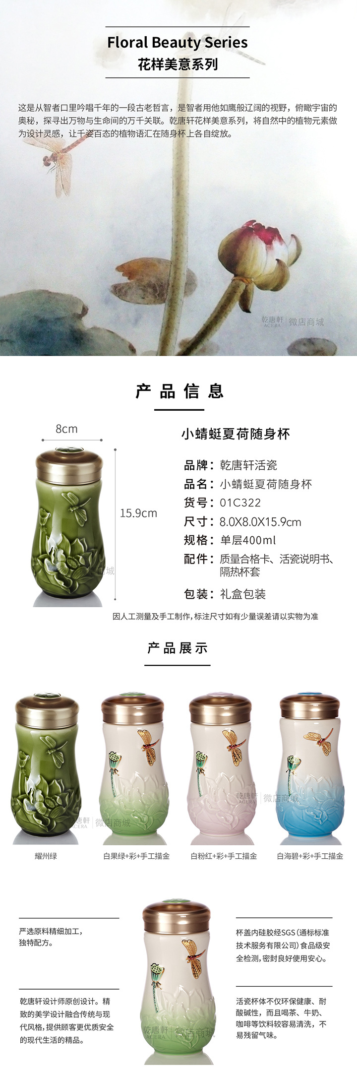 小蜻蜓夏荷随身杯 单层400ml