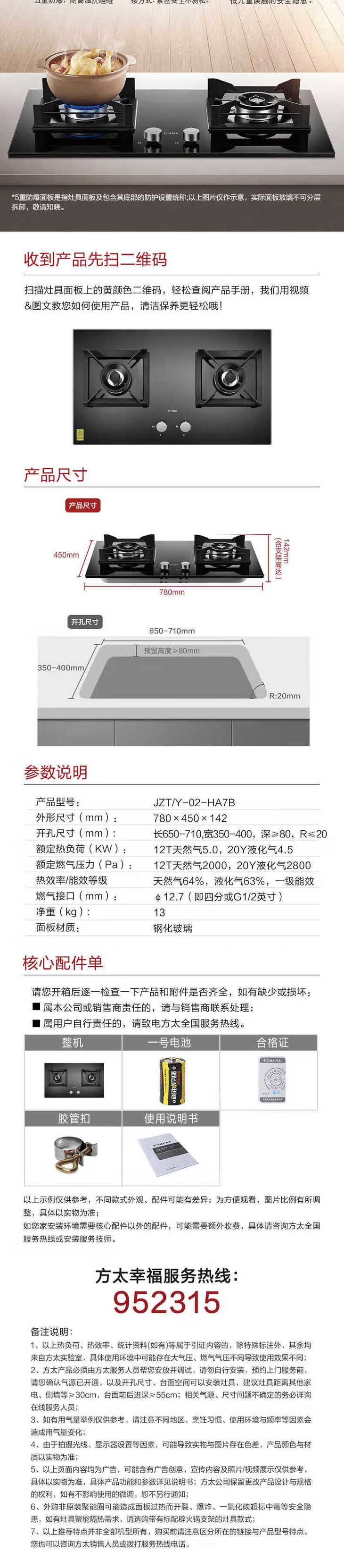 方太(11795)[专柜同款方太03-HA7B燃气灶家用煤气灶双灶嵌入式天然气灶具 03-HA7B 天然气