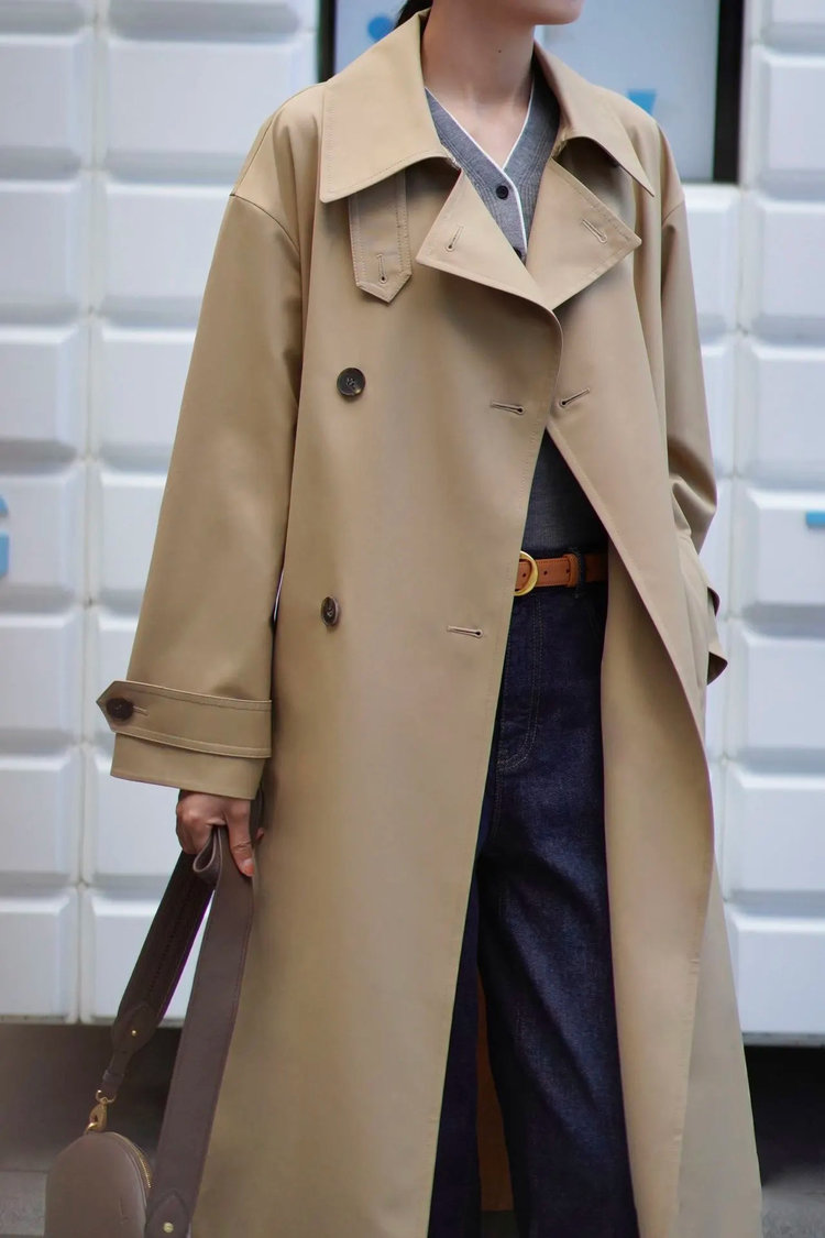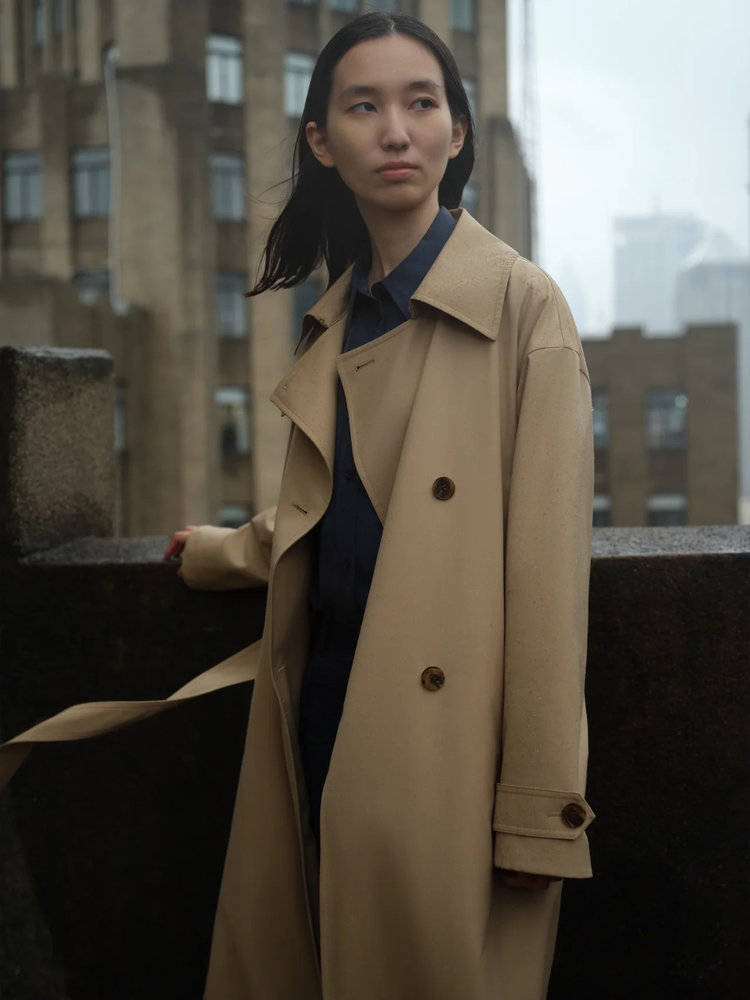 【高品质私服】【IC丝羊毛精纺平纹布翻领风衣】线条流畅干练,富有人文气质,干练优雅与率性风格随意切换N1040-CC【无标出货 介意慎拍】