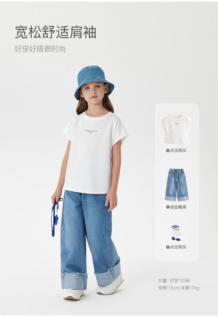 【凉感透气】马克珍妮女童简约多彩T恤 儿童上衣夏装新款550687
