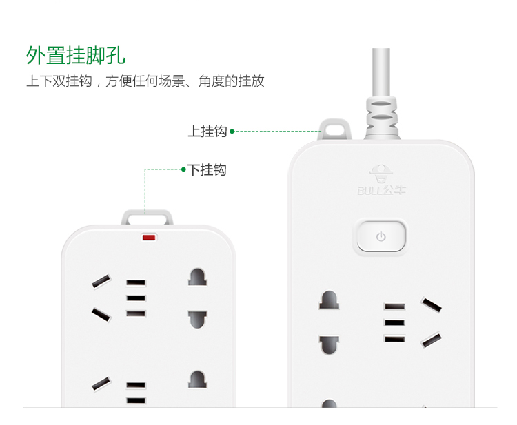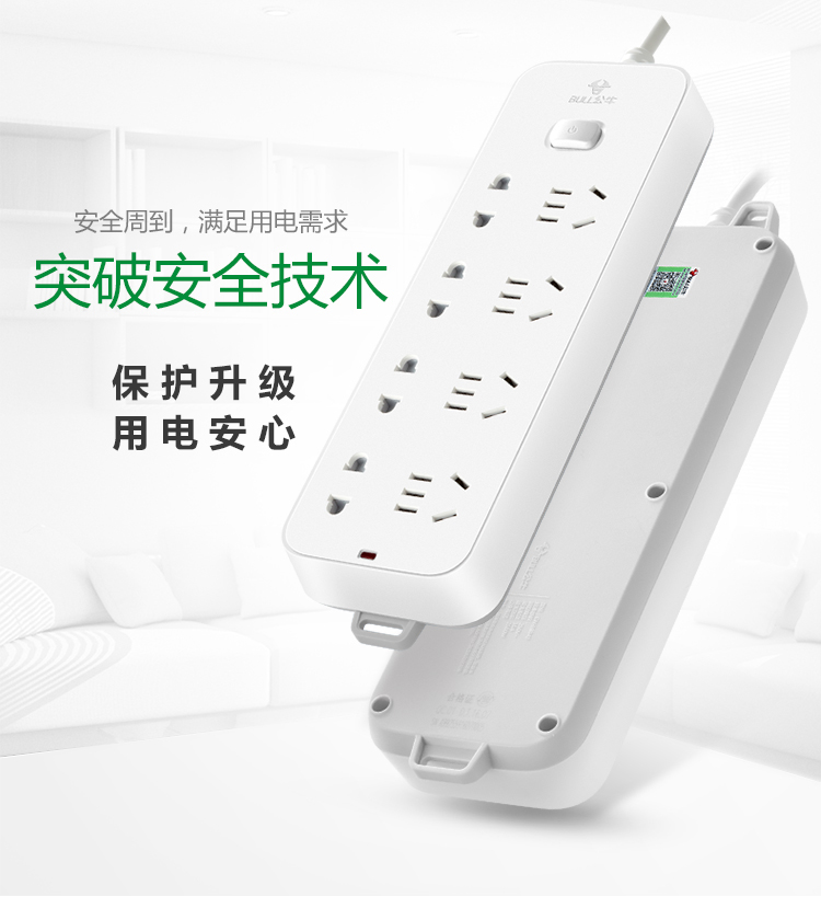 公牛(BULL)新国标插座/插线板/插排/排插/接线板/拖线板GN-B3440+GN-B3043 8位总控+4位分控1.8米组合套装
