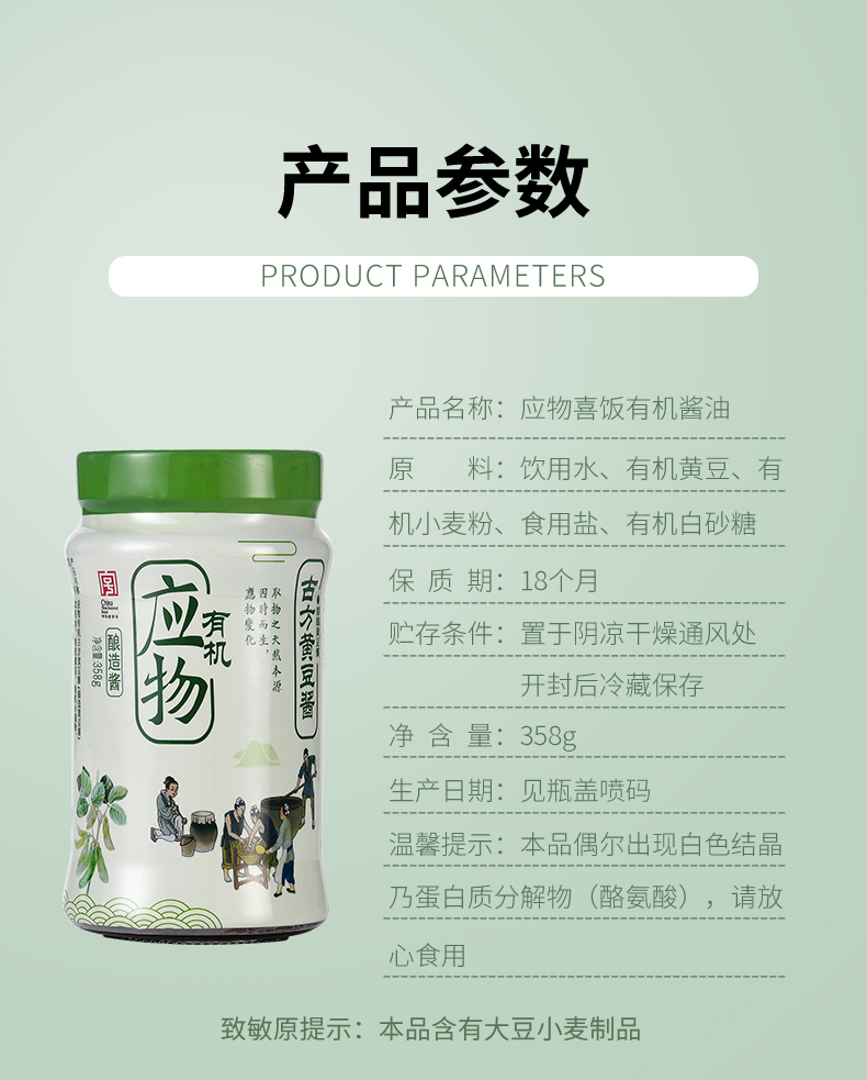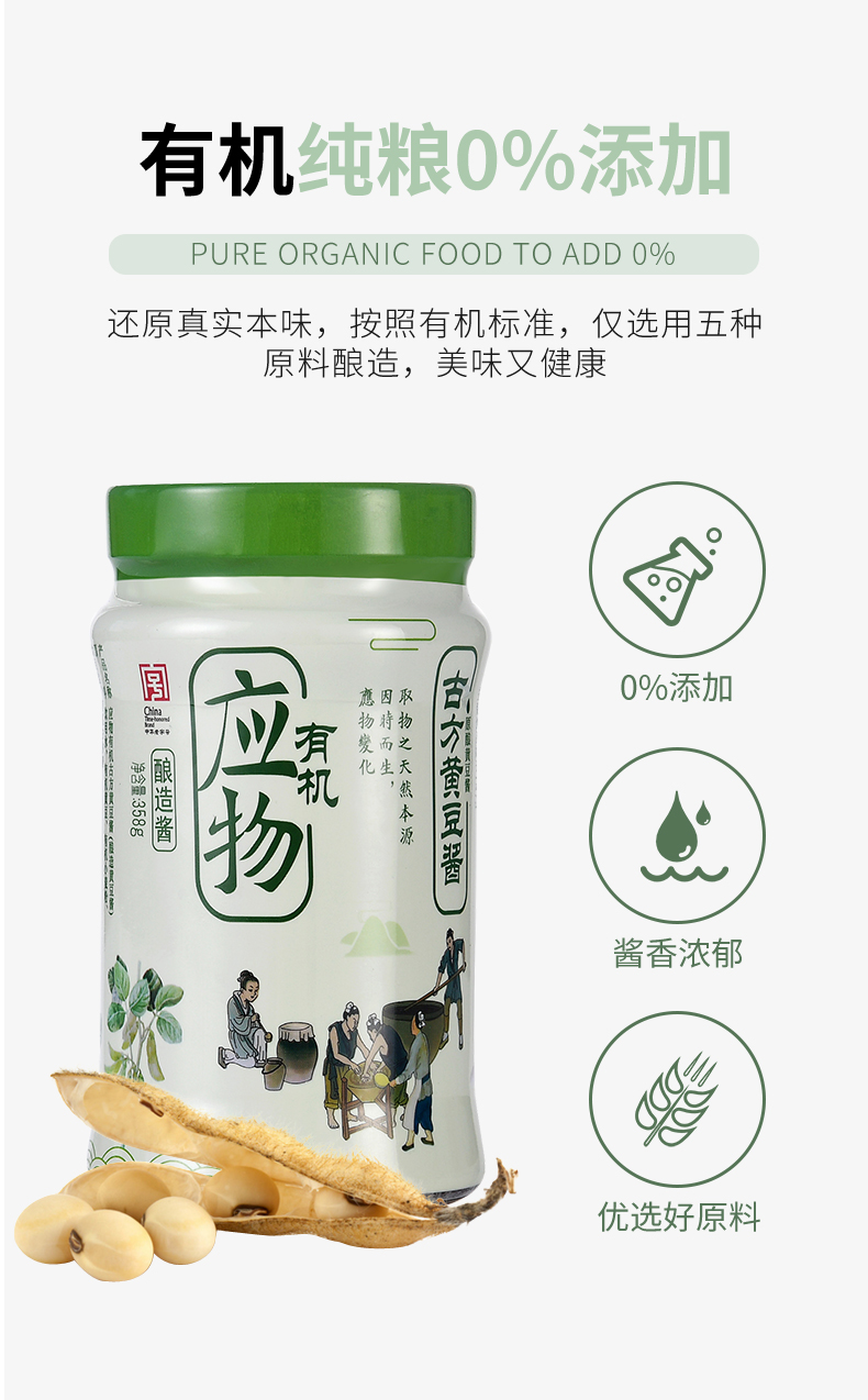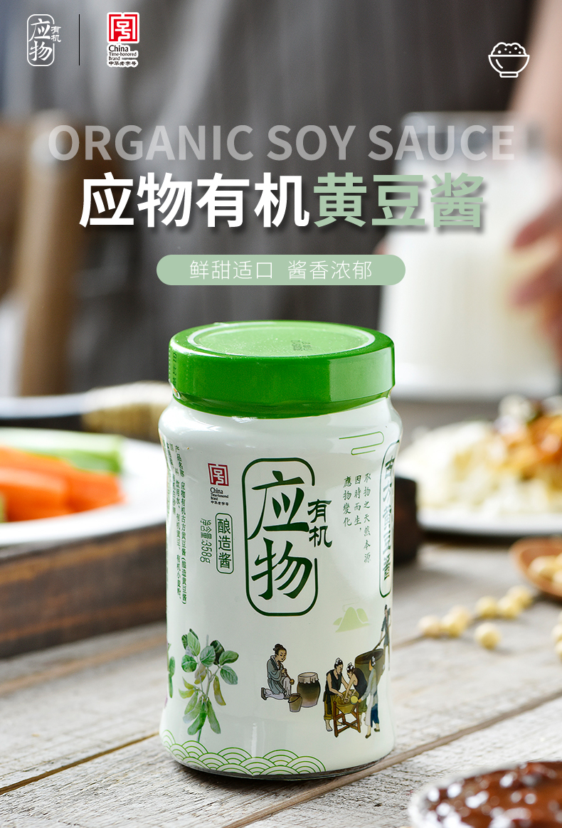 应物有机黄豆酱无添加358g东北大豆黄豆酱豆瓣酱家用拌面酱拌饭酱