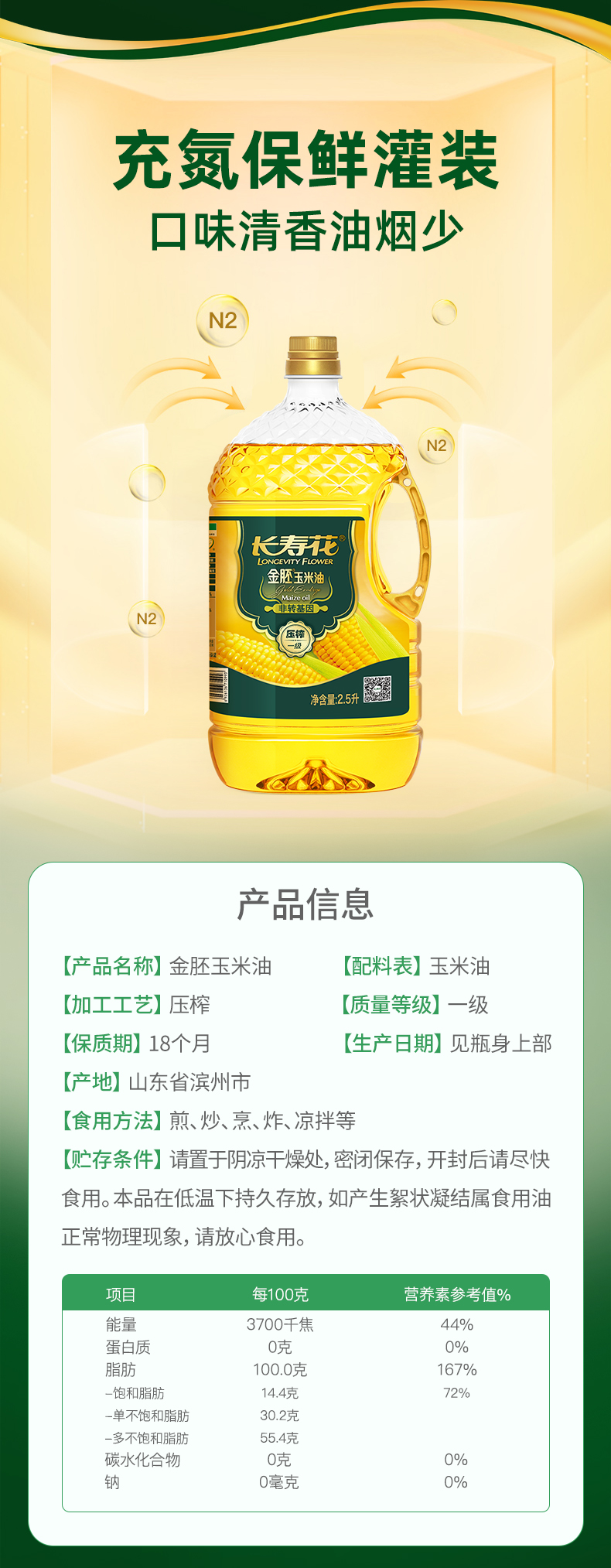 长寿花金胚玉米油2.5L小瓶装非转基因烘焙专用蛋糕胚芽食用