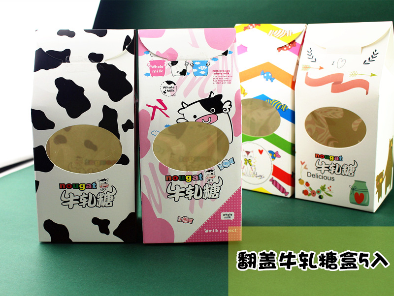 翻盖牛轧糖盒5入 牛轧糖饼干西点包装盒 小手提盒