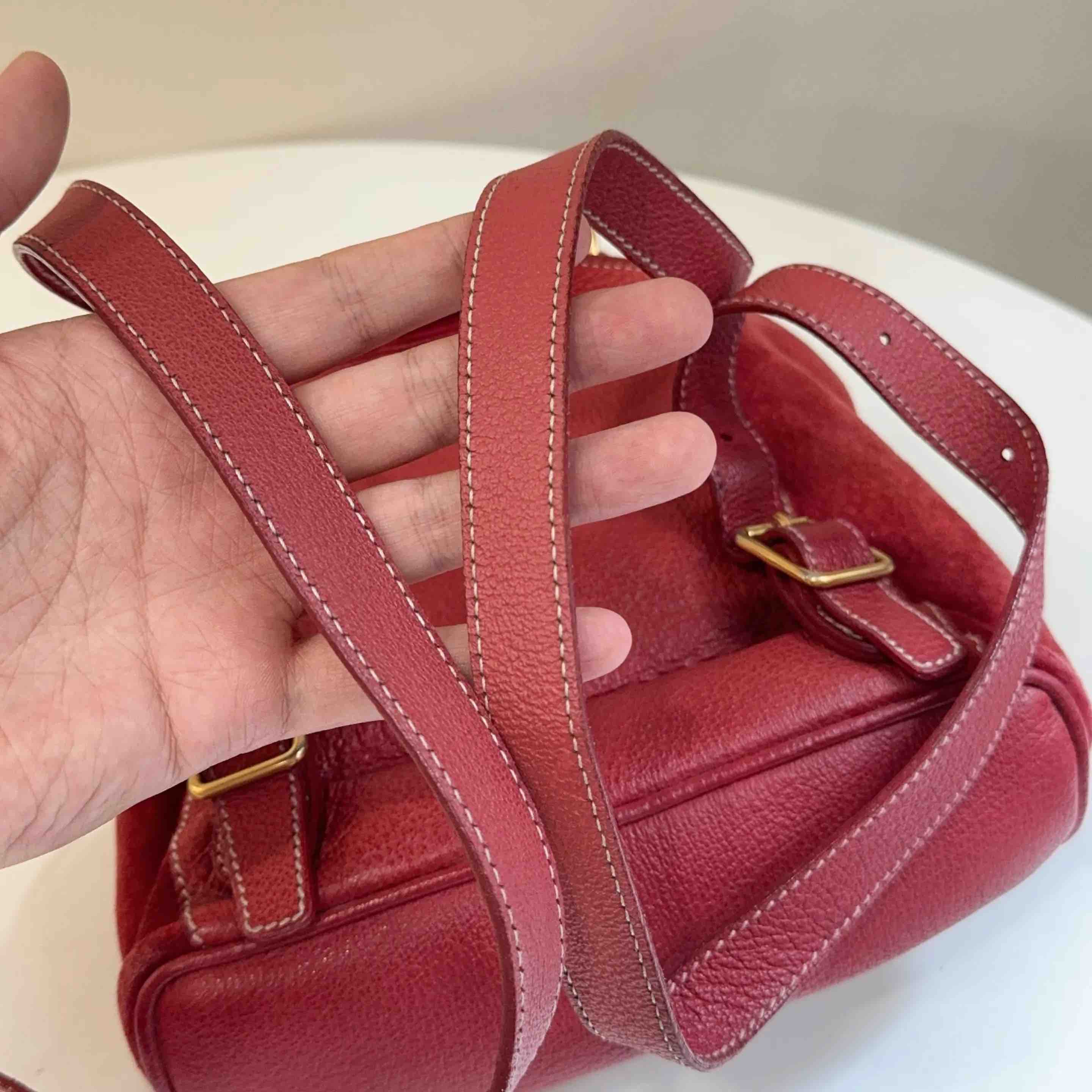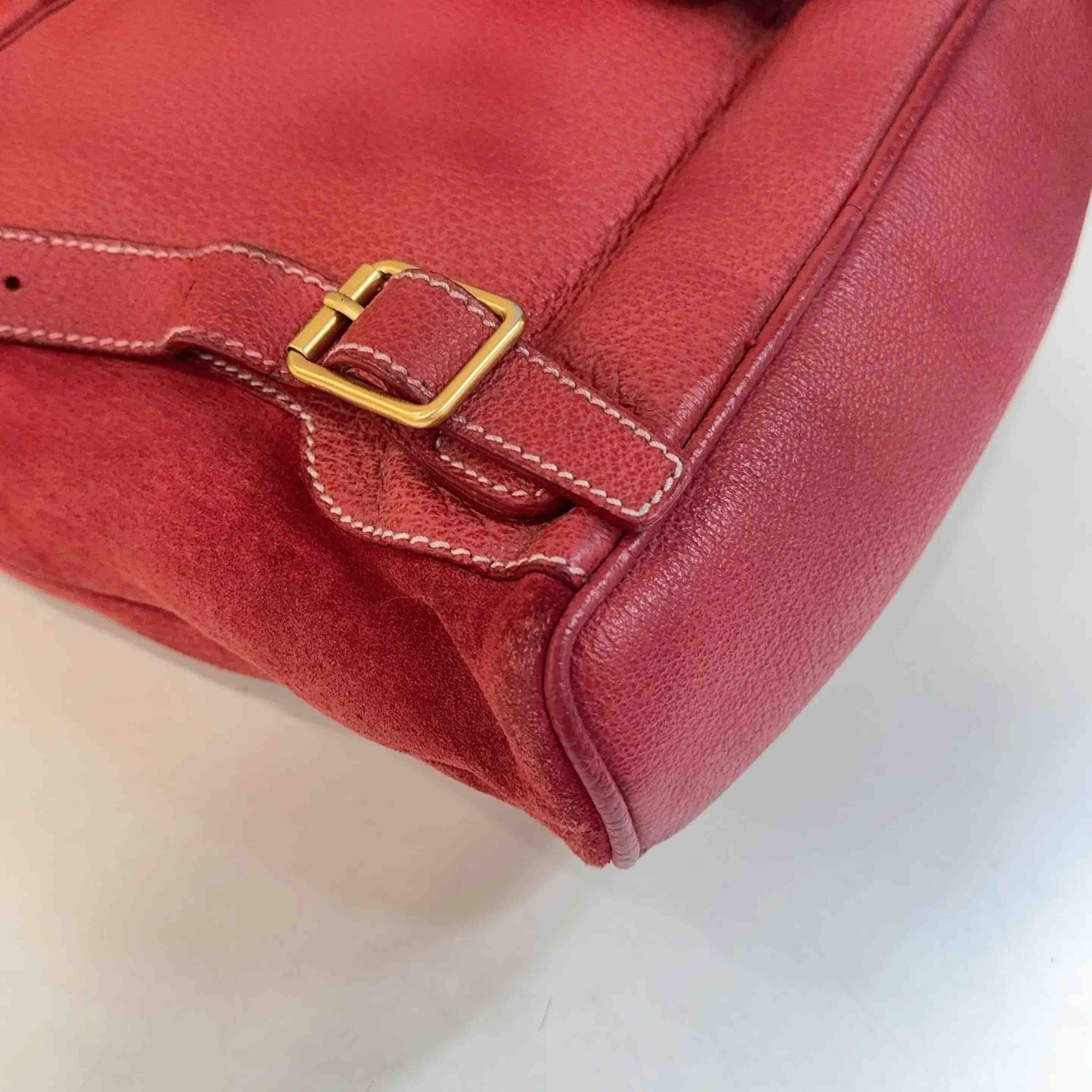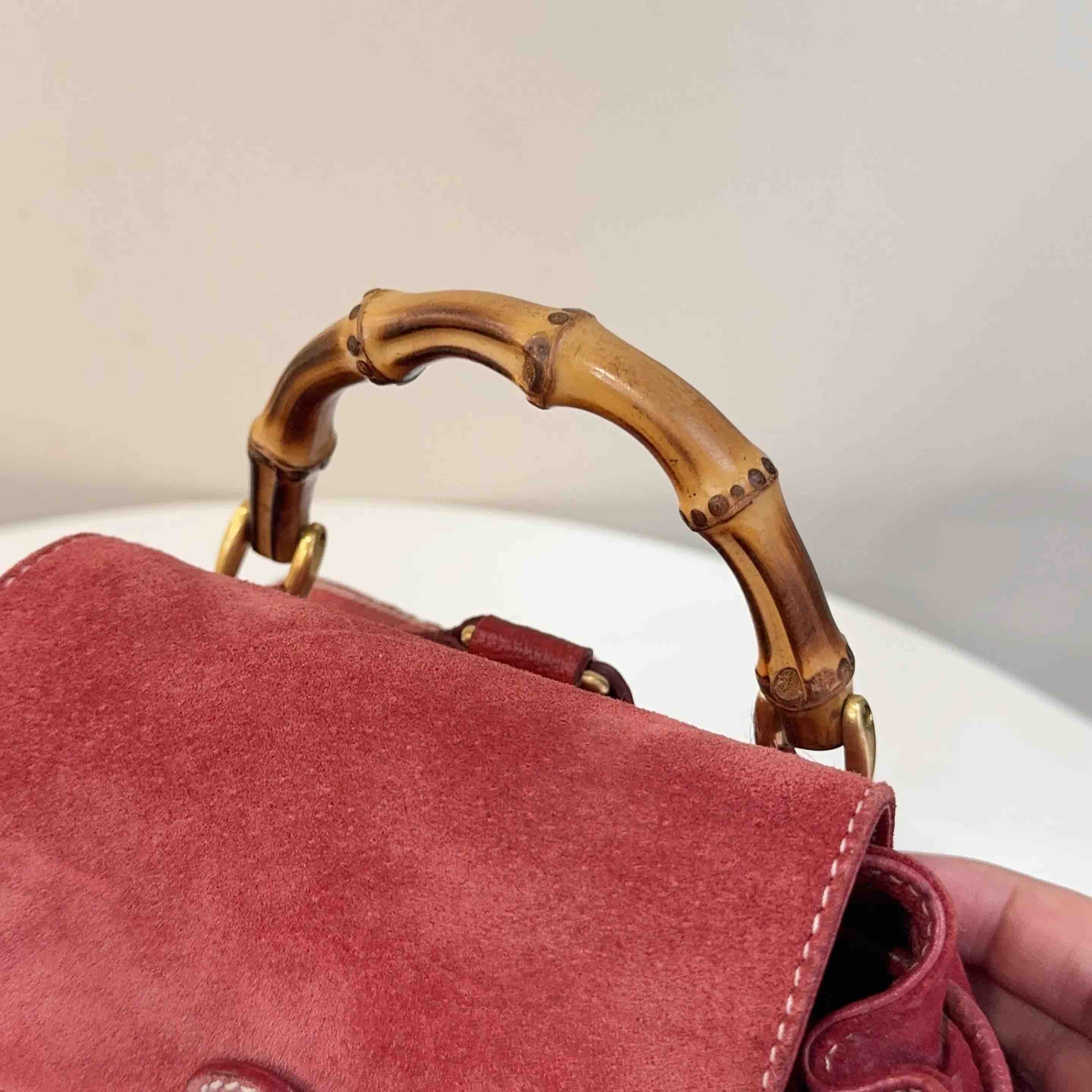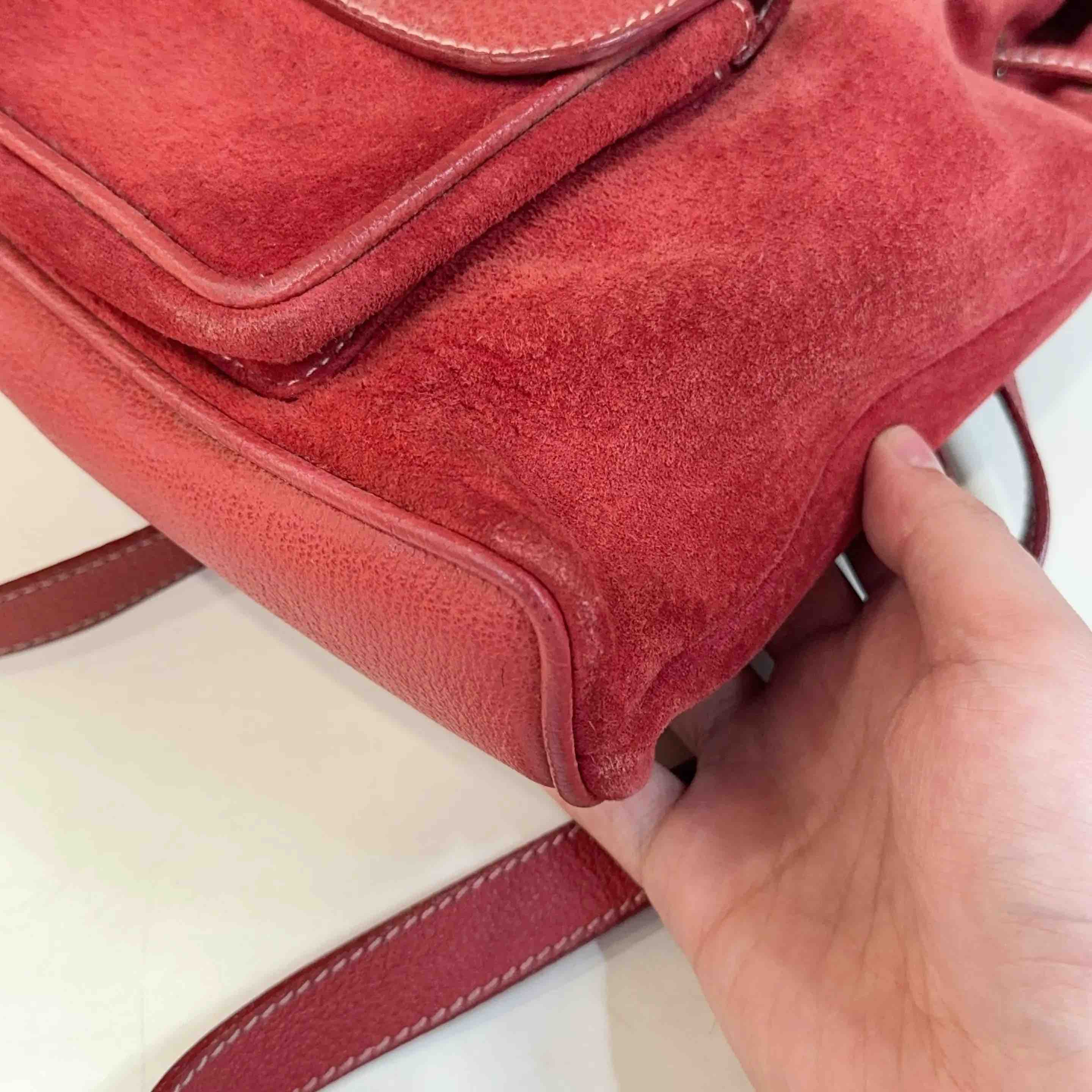 【商品详情】正品二手 Gucci 红色 麂皮 竹节 双肩包🎒95新 21*22。边角轻微使用磨擦感。中古市场超受欢迎。