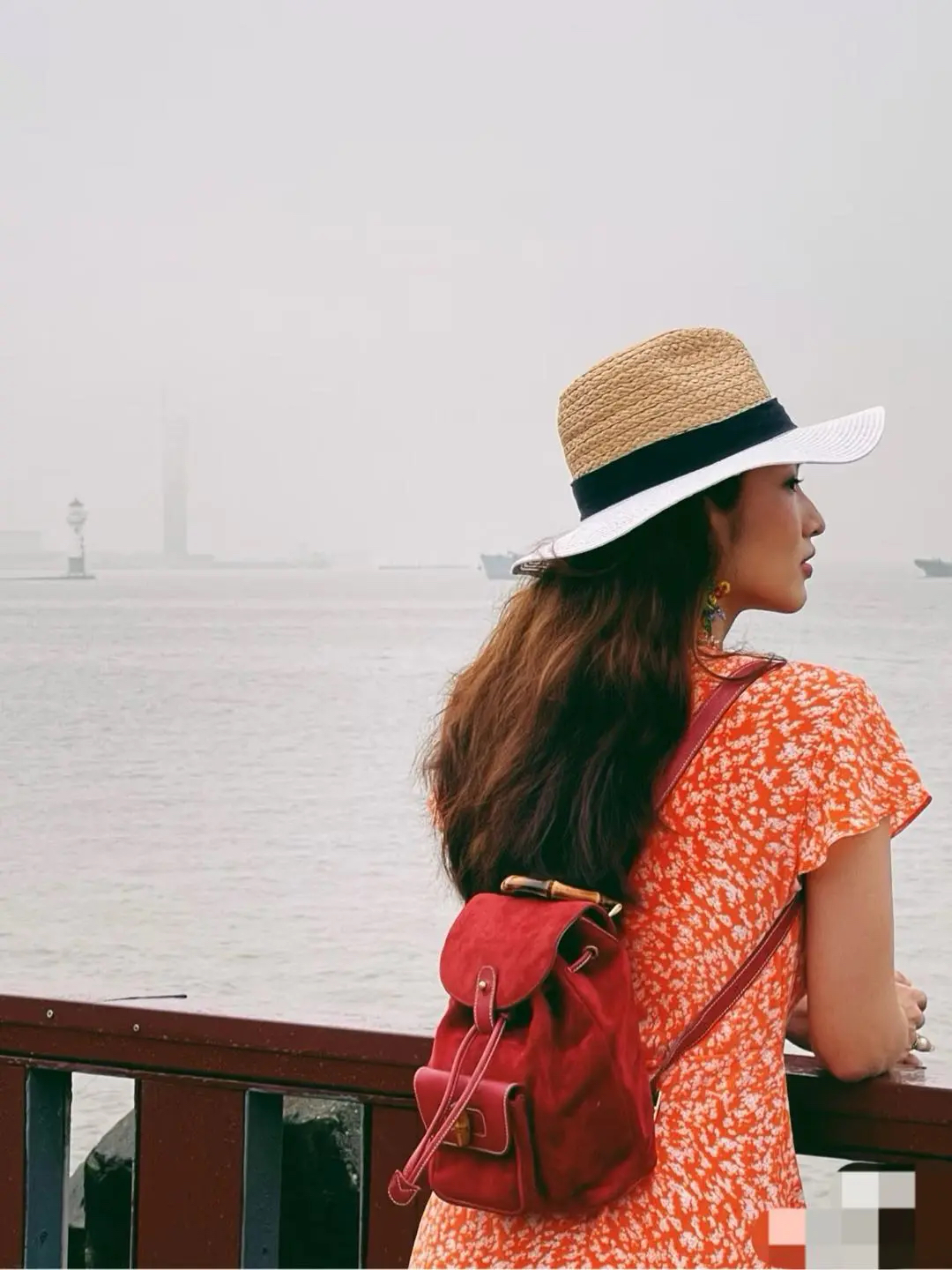 Gucci 红色 麂皮 竹节 双肩包
