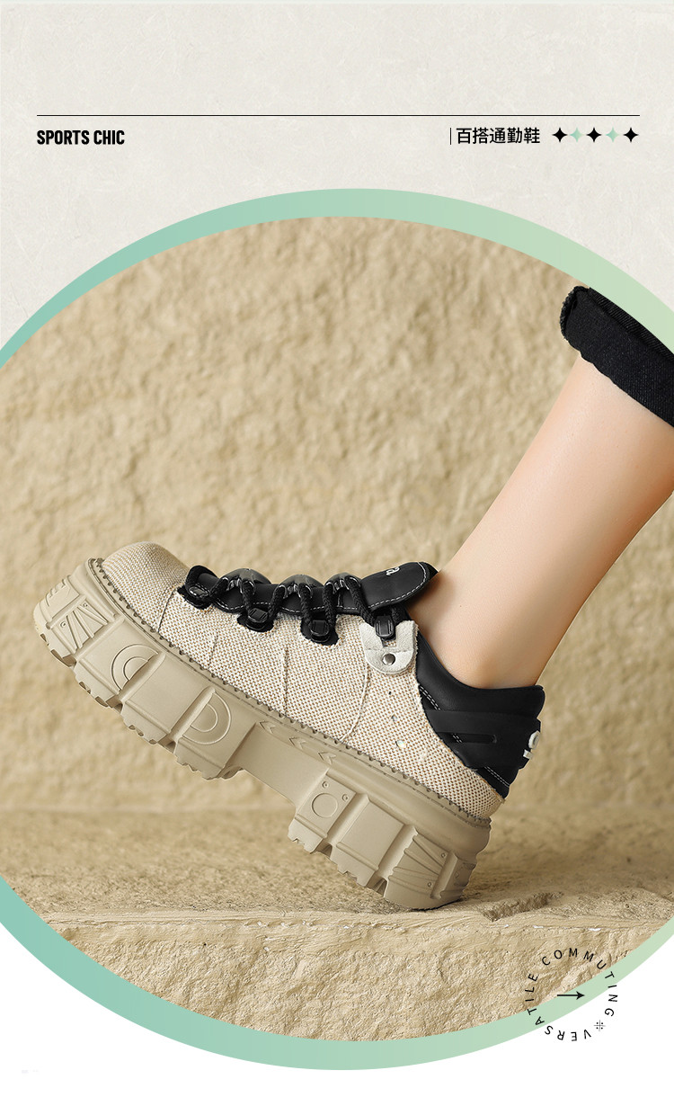 品质好货 | Safiya/索菲娅2024春季运动休闲增高户外风圆头厚底板鞋 SF41112720