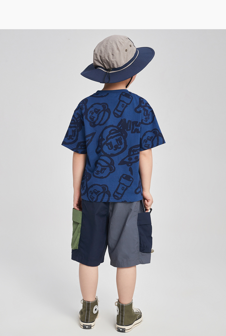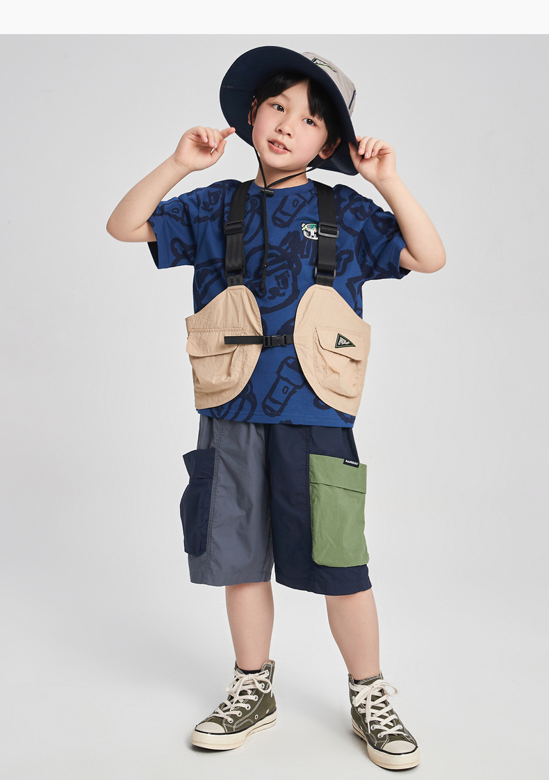 漫画家潮童装男童裤子山系户外工装口袋活力不对称拼接儿童中裤