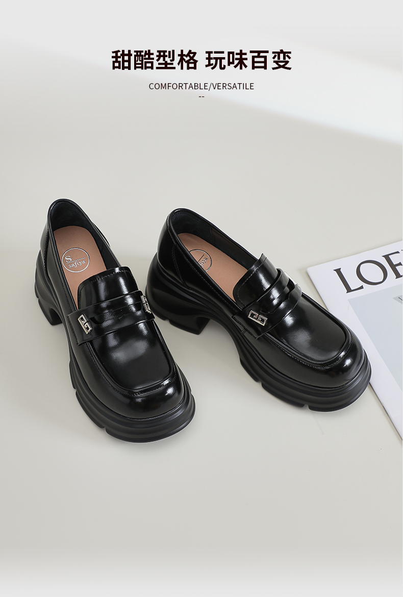 Safiya/索菲娅2025春英伦风粗跟厚底金属扣百搭JK小皮鞋 SFD1112209