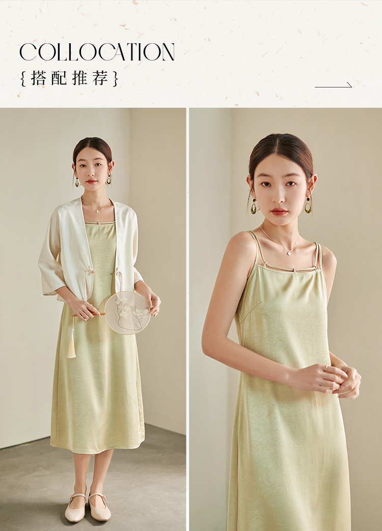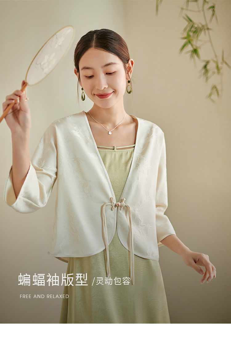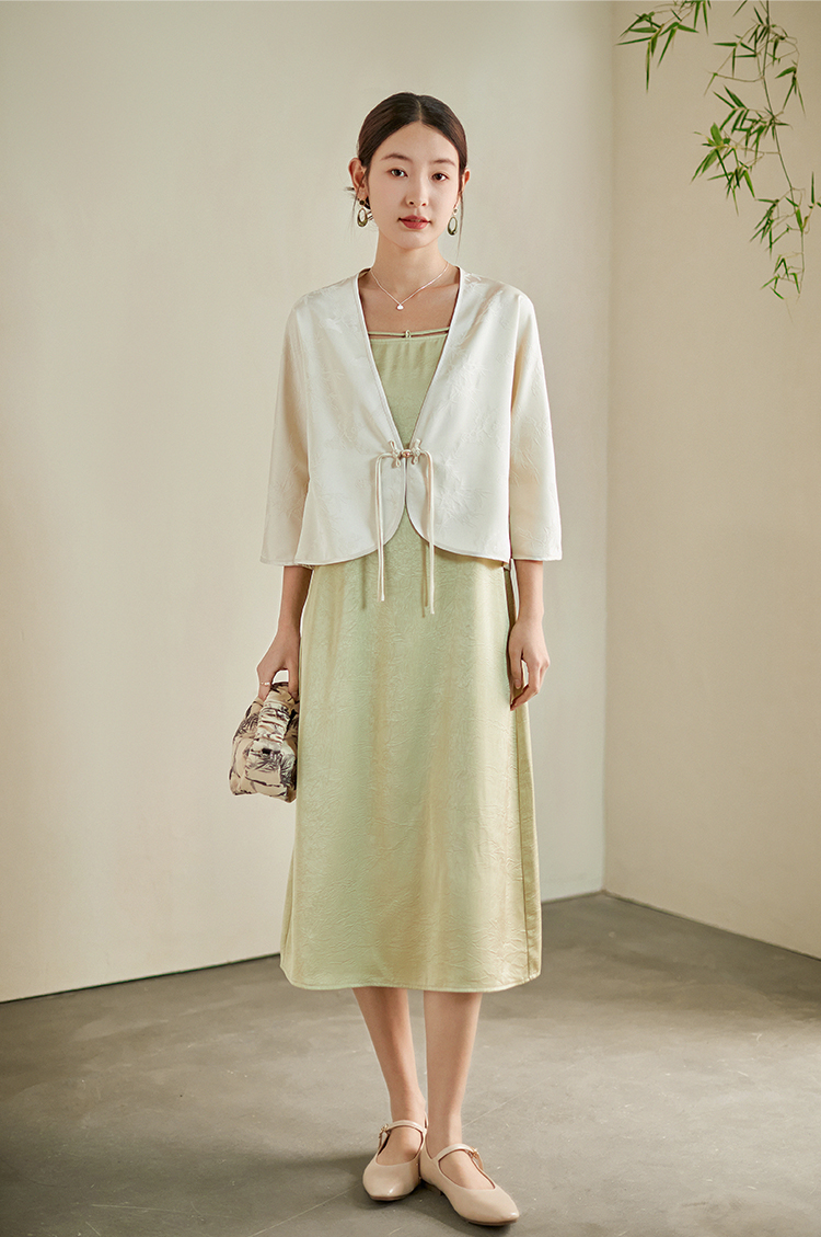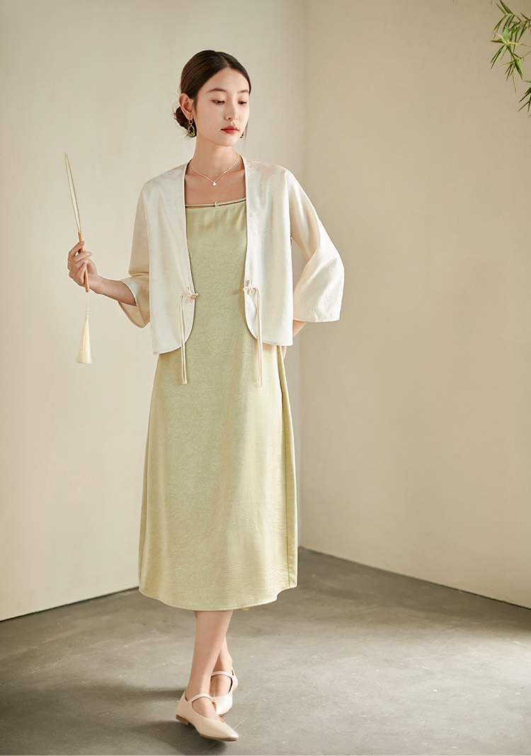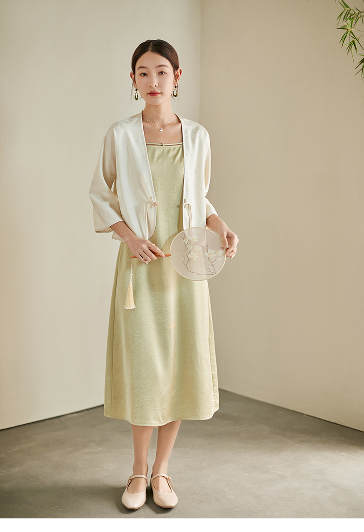 【专属特价】熙世界国风汉服改良中式套装女夏季新款提花短外套吊带裙子两件套