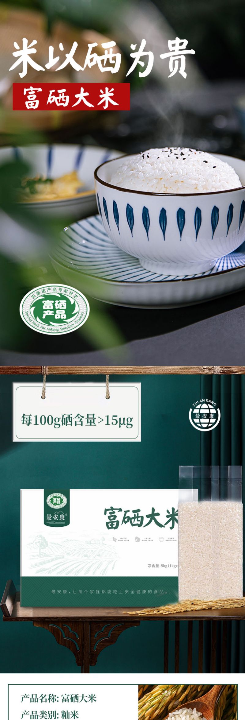 最安康富硒大米 5KG白色礼盒(山田米)