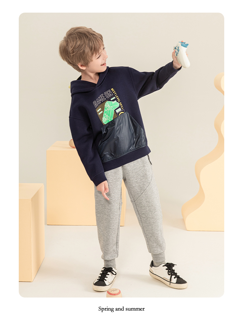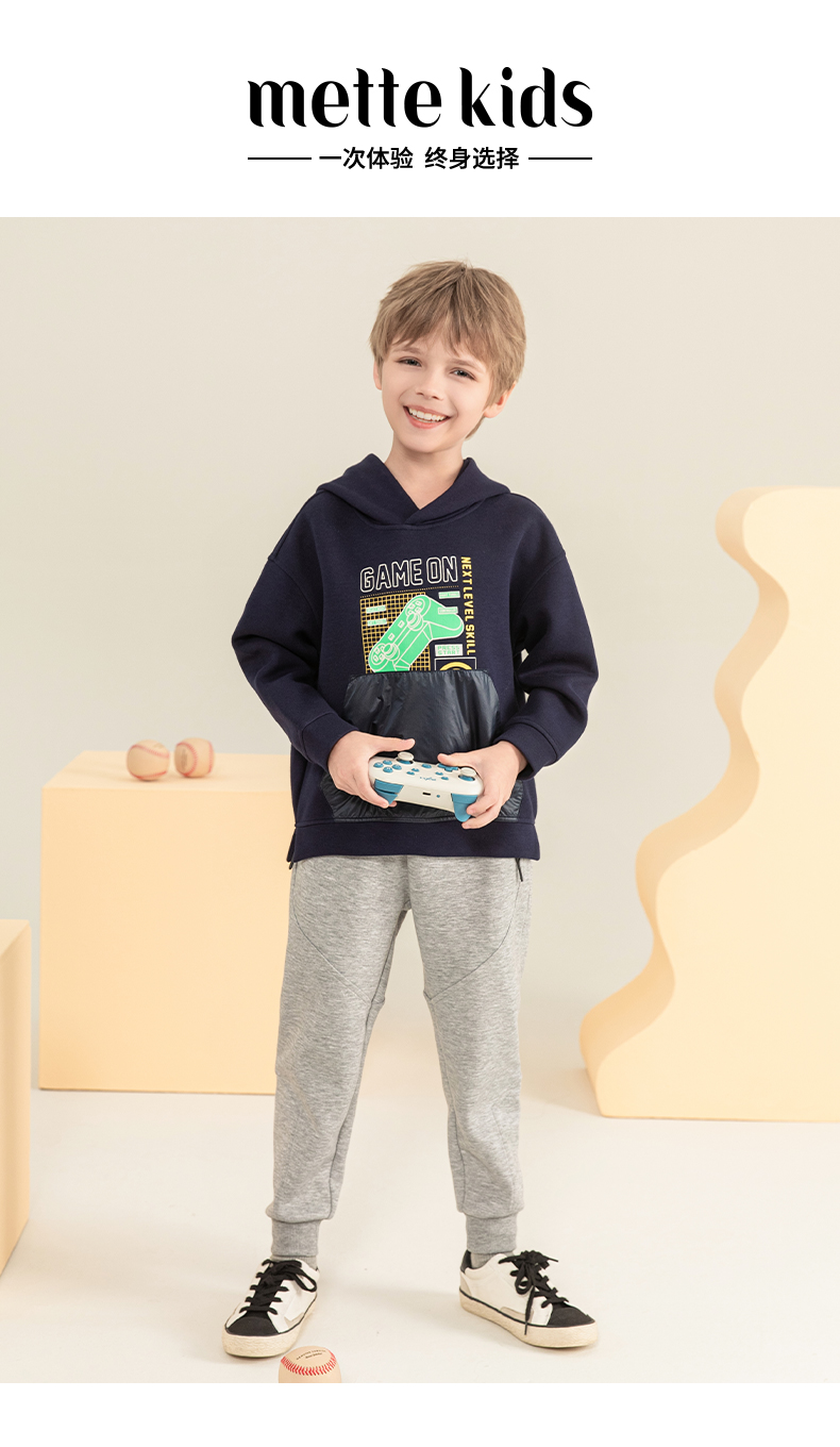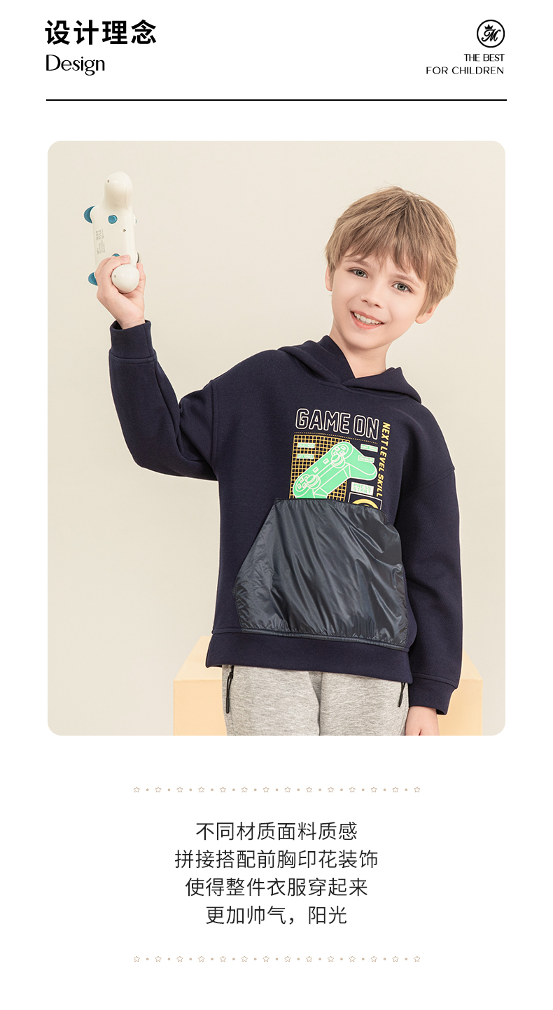mettekids男童连帽卫衣2023秋季新款童装儿童休闲帅气长袖上衣