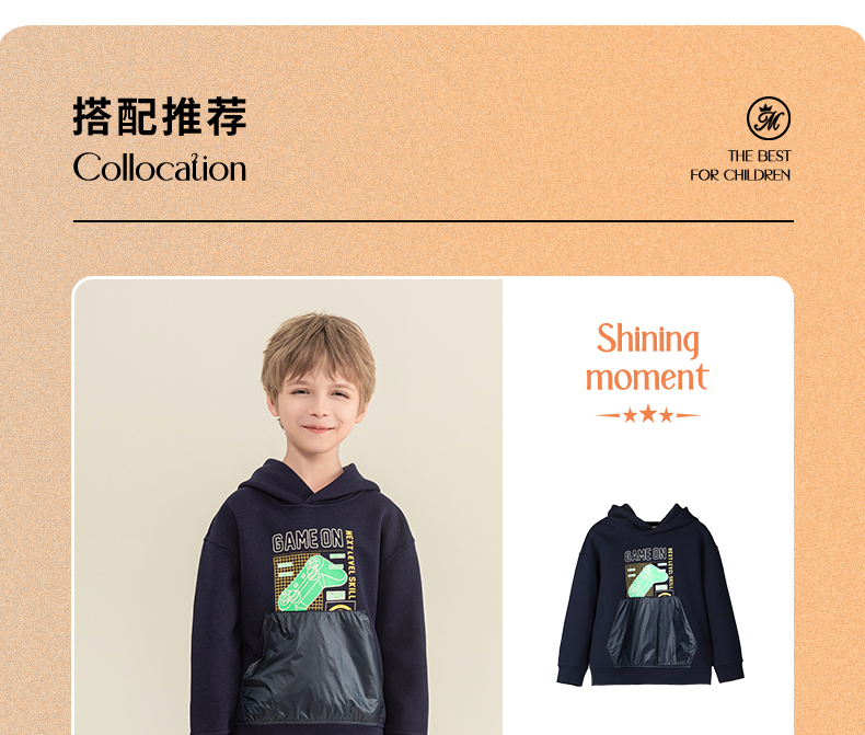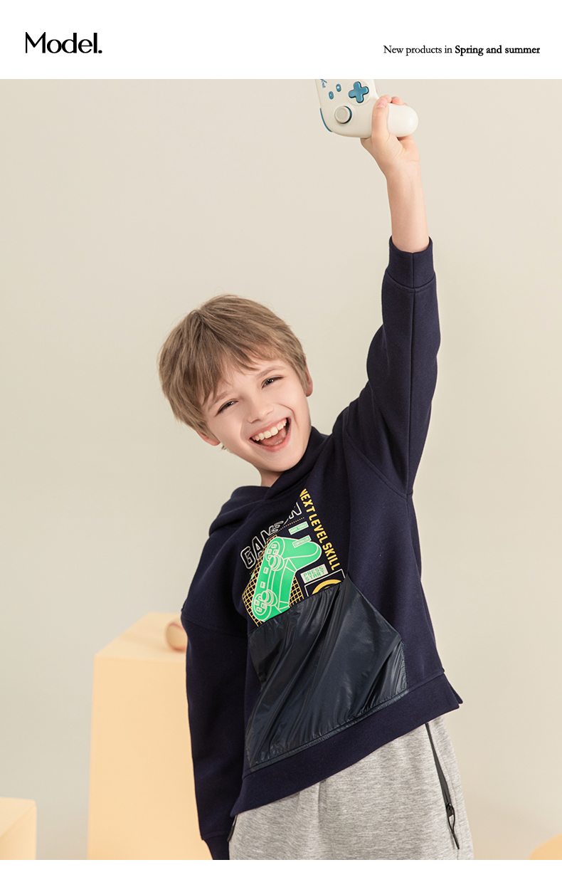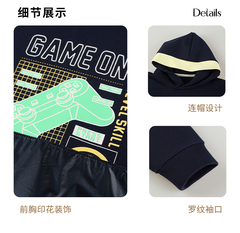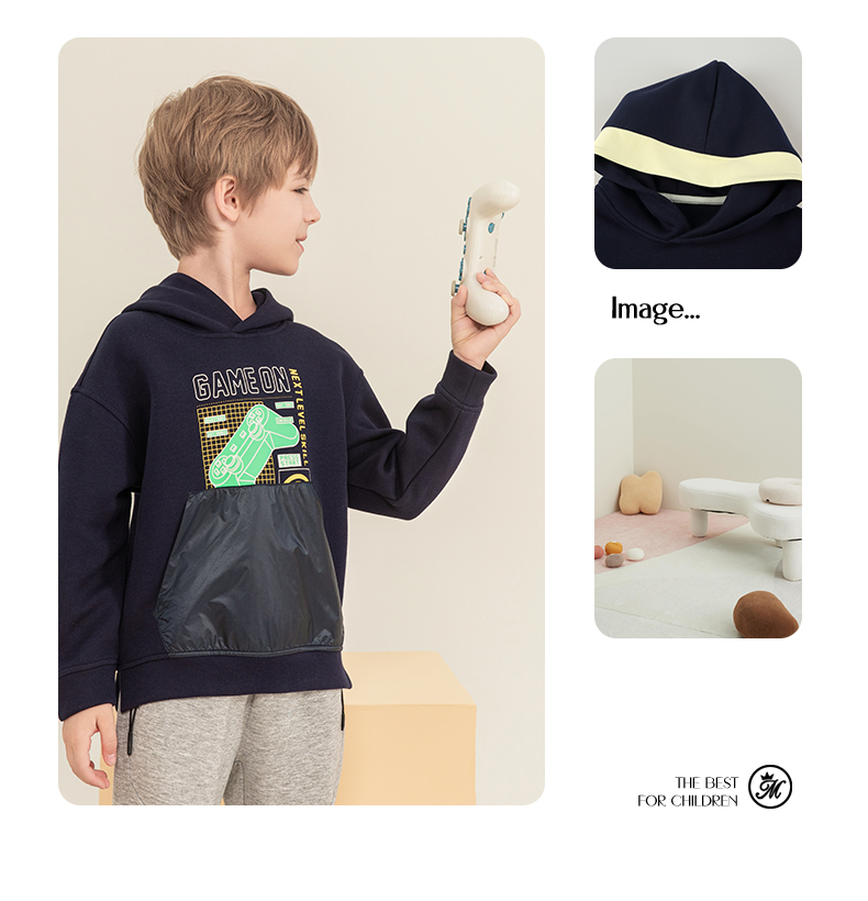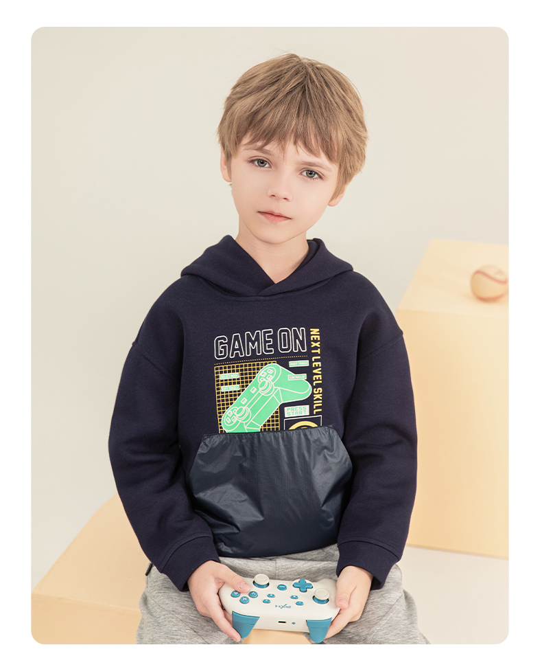 mettekids男童连帽卫衣2023秋季新款童装儿童休闲帅气长袖上衣