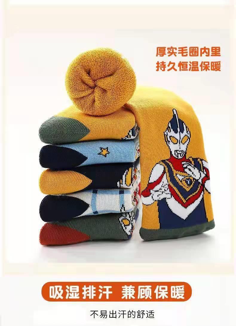 诺妃10双装儿童加厚冬季毛圈袜 男童女童卡通恐龙加绒加厚宝宝袜保暖