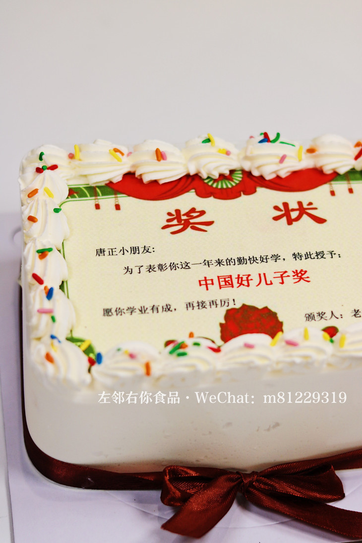 奖状由可食用的糯米纸打印