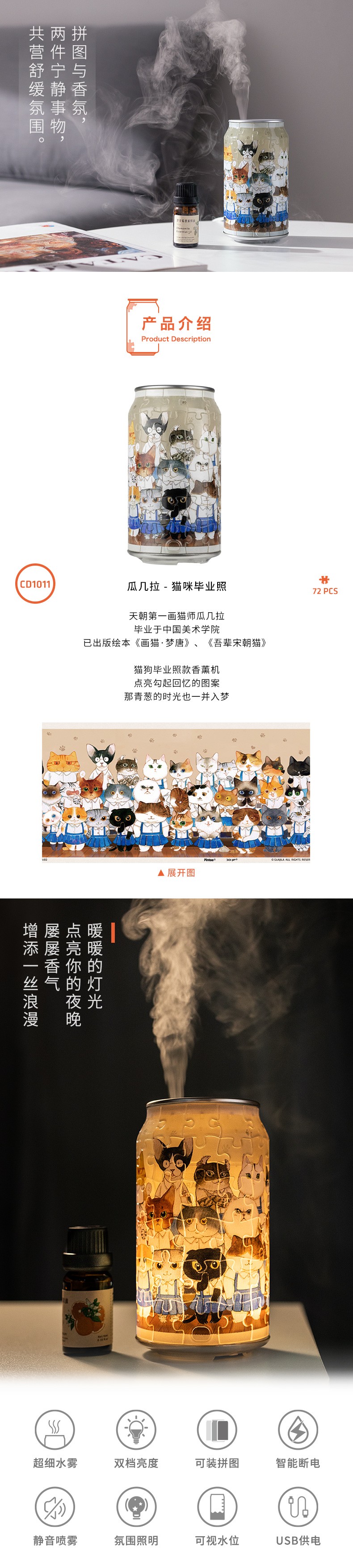 【折扣商品 】香薰机系列 CD1011 瓜几拉- 猫咪毕业照-精油为临期商品