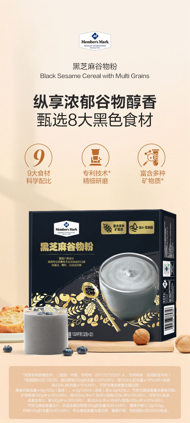 【山姆】Member's Mark黑芝麻谷物粉 1.024kg(32g*32)