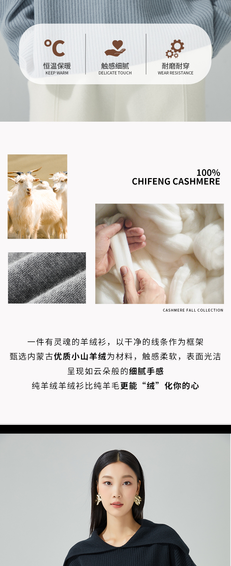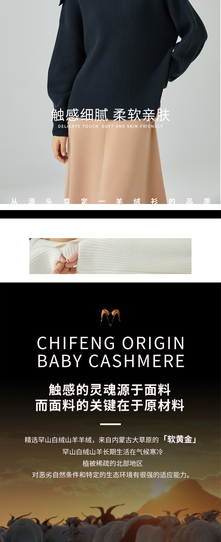 东黎羊绒是赤峰东荣集团自主品牌,自有牧场/羊绒制品全产业链优势,实现了羊绒从“牧场”到“商场”的华丽转变。