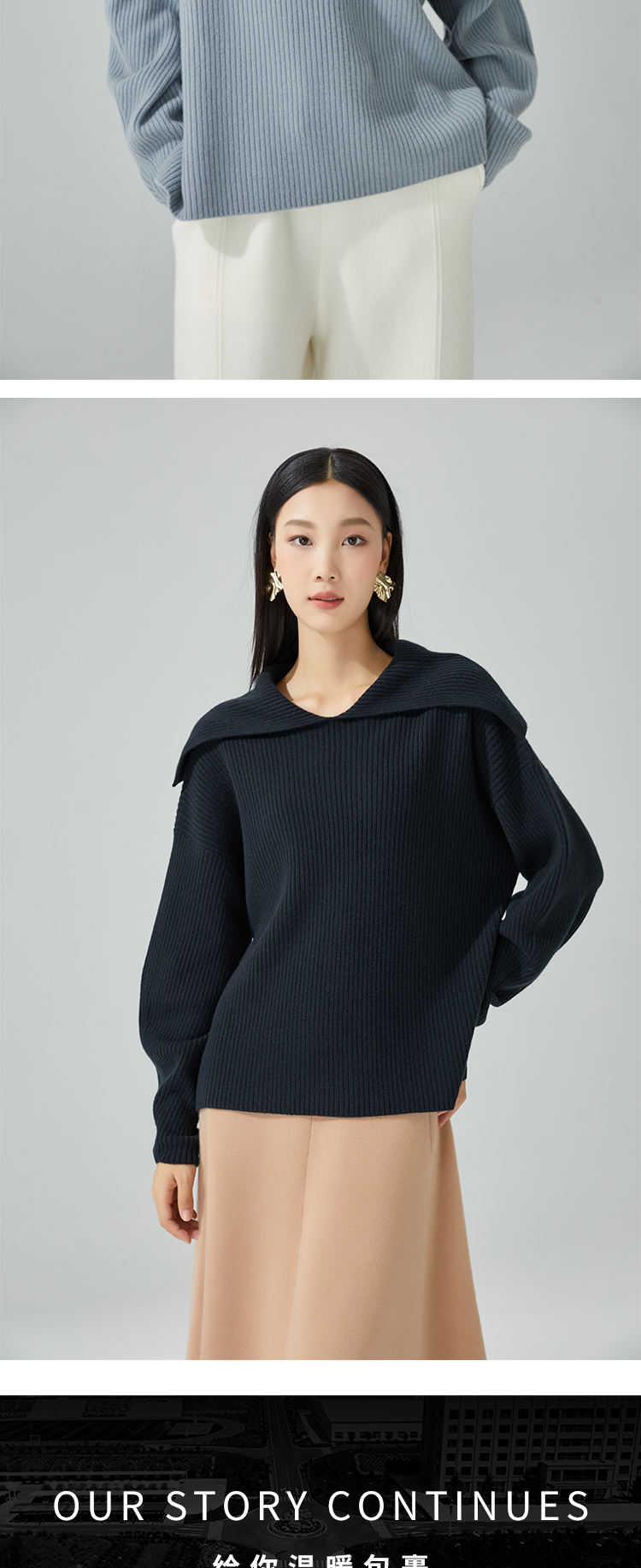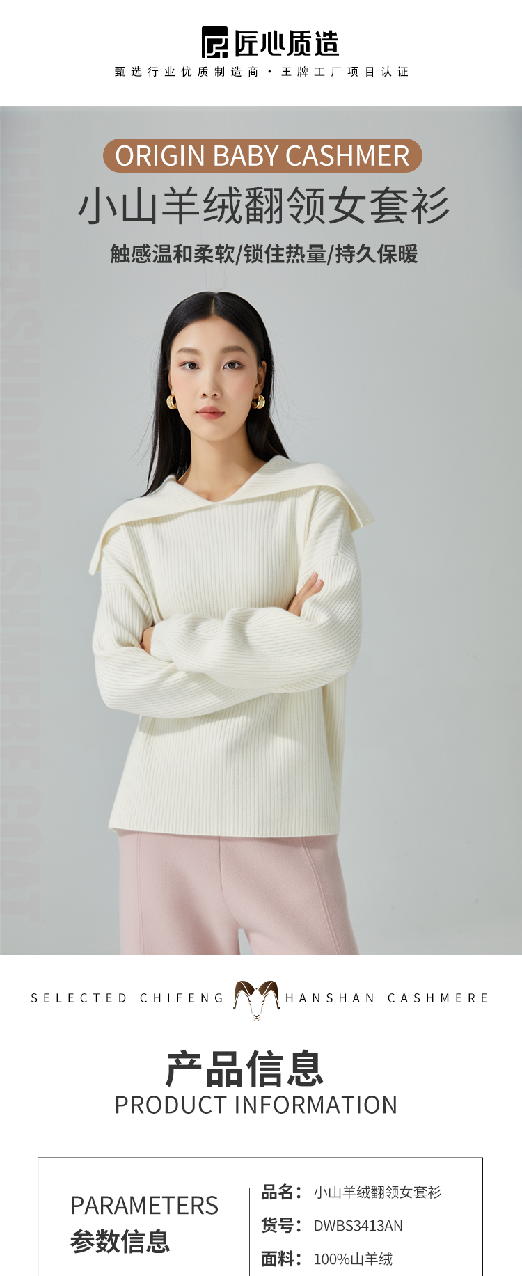 东黎 • 小山羊绒女士秋冬马尔代夫阳光翻领套头衫 3413