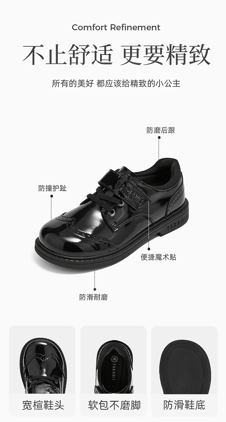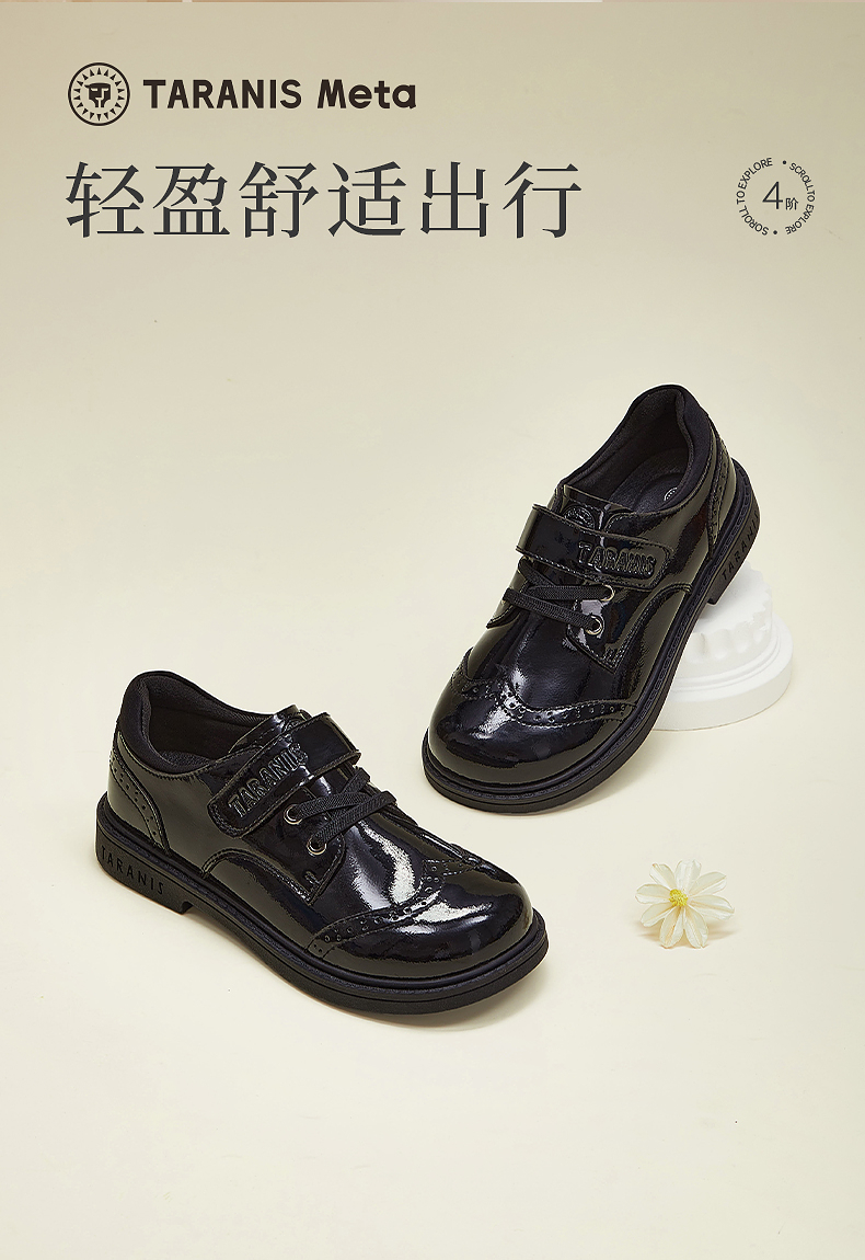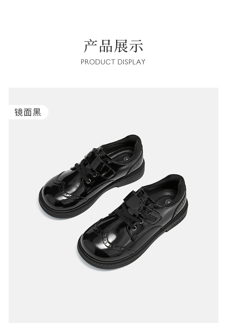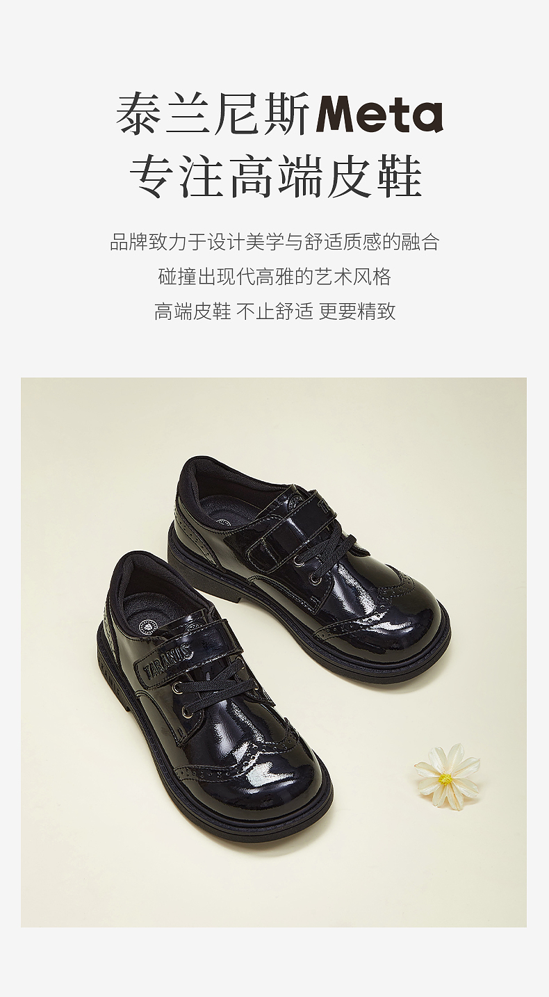 泰兰尼斯meta黑皮鞋春季新款儿童小皮鞋演出聚会简约校园小黑鞋 M03D5A5704