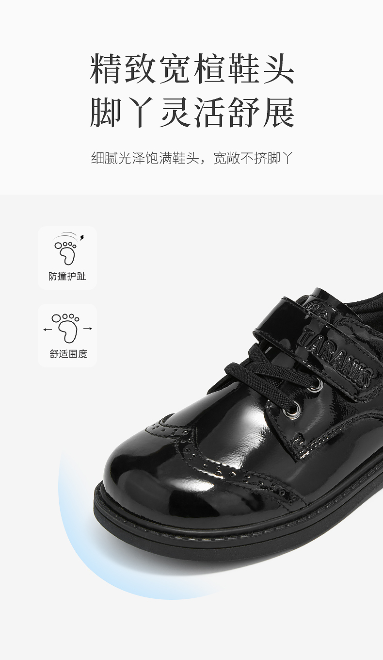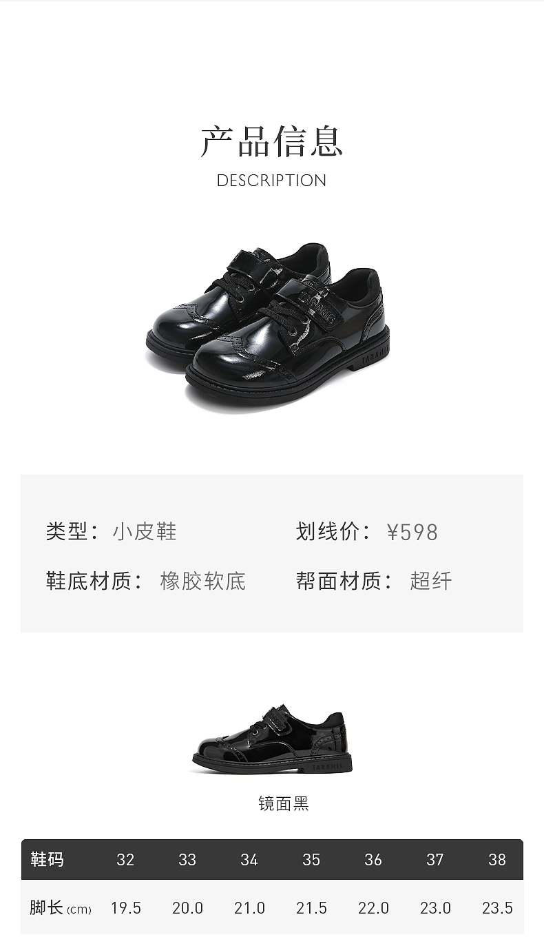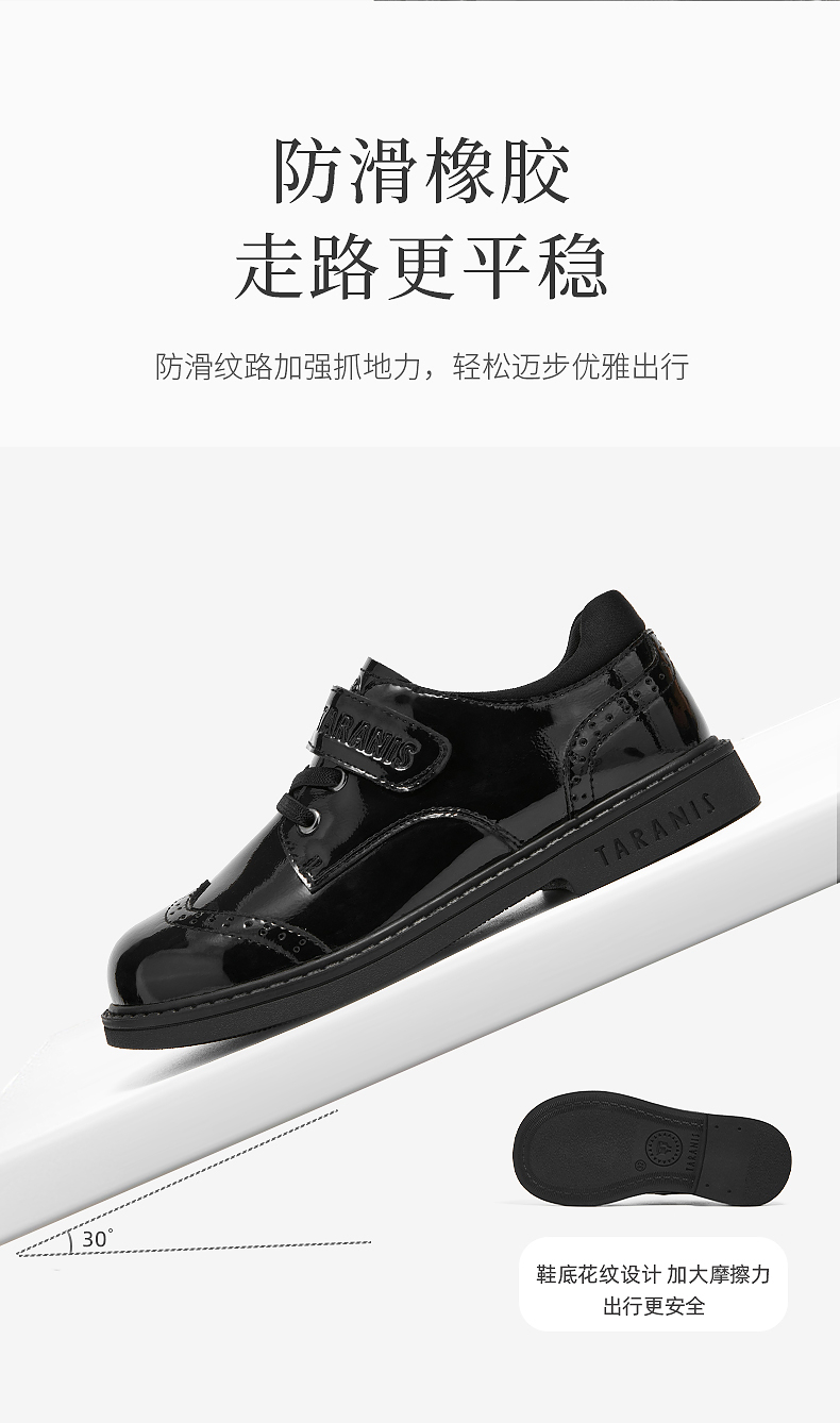 泰兰尼斯meta黑皮鞋春季新款儿童小皮鞋演出聚会简约校园小黑鞋 M03D5A5704