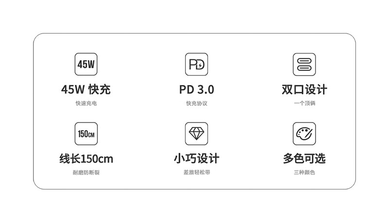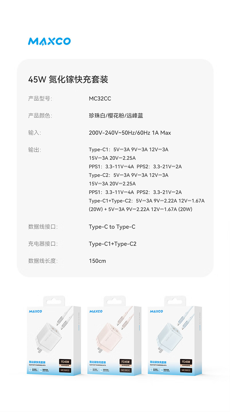 美能格MC32CC,45w充电器套装配线Type-C多口适用华为苹果手机充电器快充头15数据线