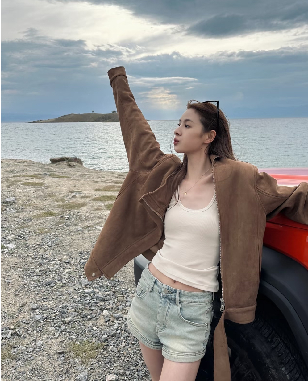 刚好露出部分脖颈曲线,既显脸小又显脖子长,