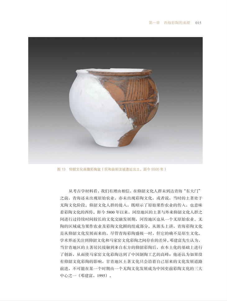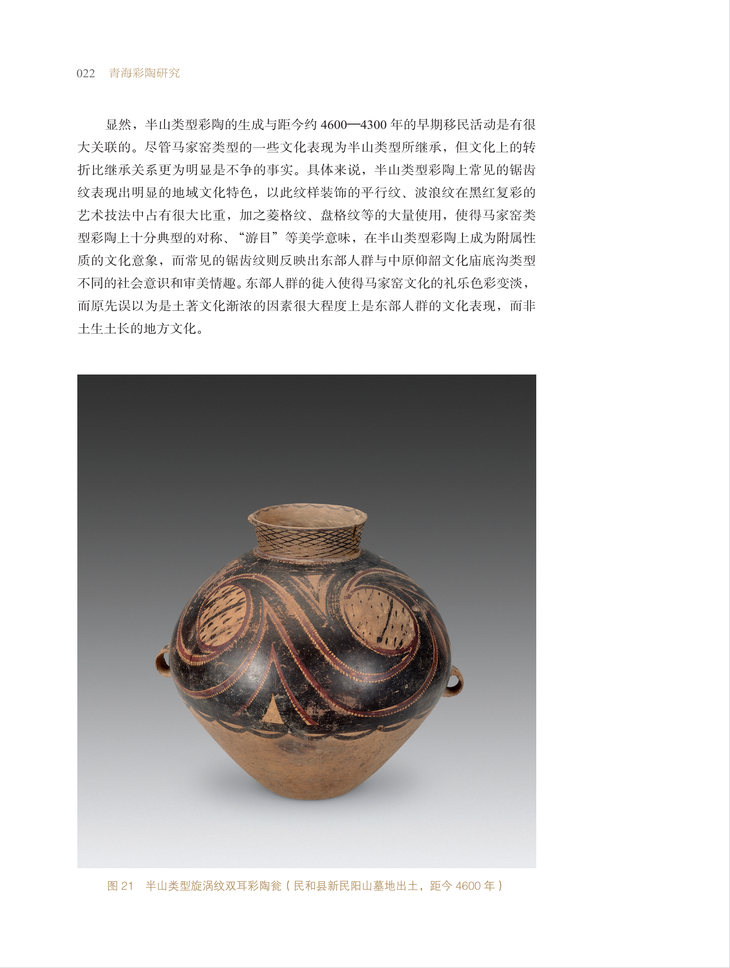 有关青海彩陶的研究、鉴赏,要么是深入细致的考古学研究成果,要么是彩陶照片加简单文字说明的图录,使得对青海彩陶的认知或仅限于学术研究,或停留在直观赏析层面。有鉴于此,青海师范大学黄河文化研究院和青海省博物馆合作,通过整合近百年来的研究成果,并配以清晰的彩陶图片,以文字加图版的形式,研究、展示青海彩陶文化,在早期移民与青海彩陶的生成与发展,马家窑文化彩陶长距离贸易问题,齐家文化、辛店文化及卡约文化彩陶的渊源、族属等问题上,提出了自己的见解。