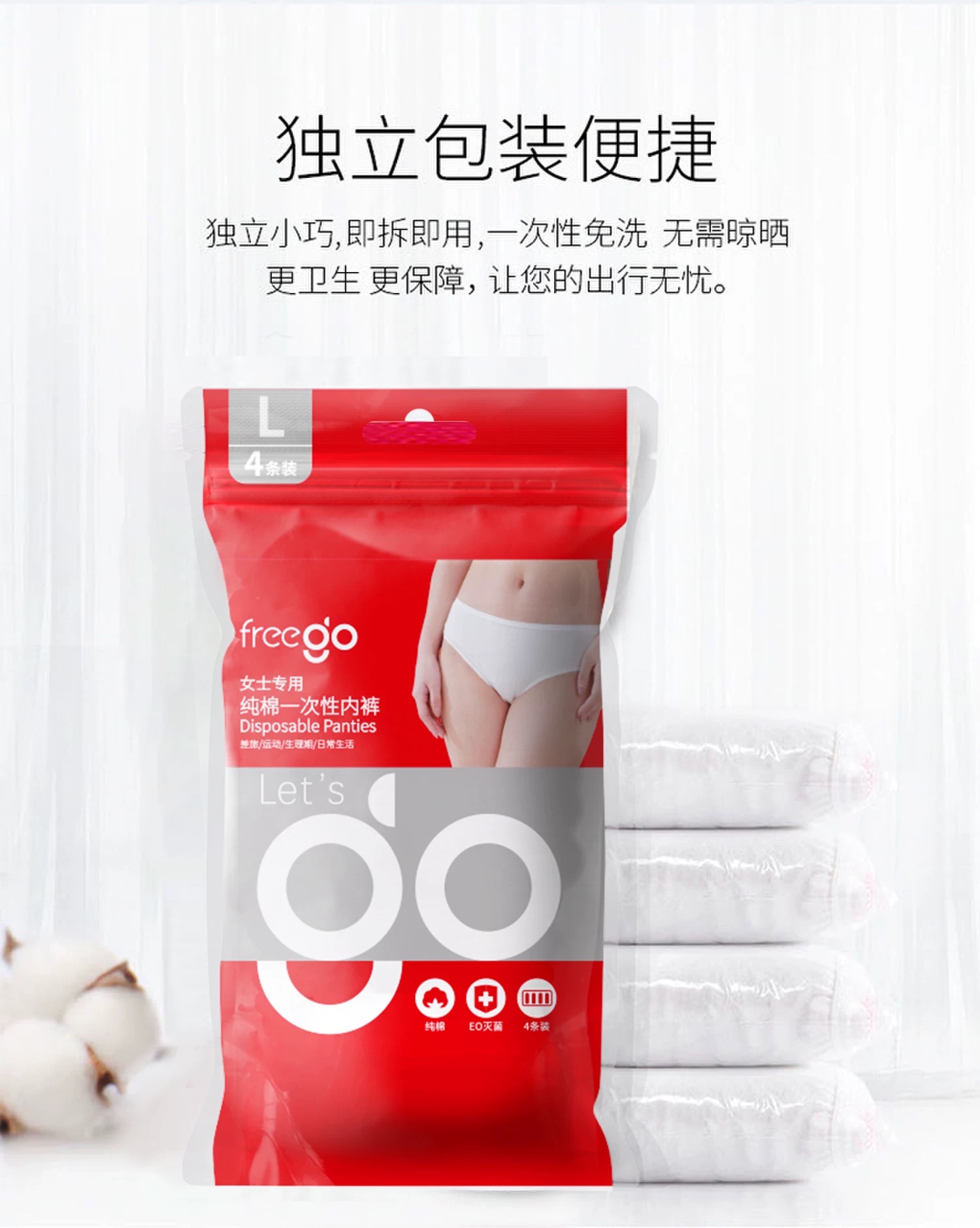 Freego女士纯棉一次性内裤5条/包 独立包装不易掉絮 110419/110456