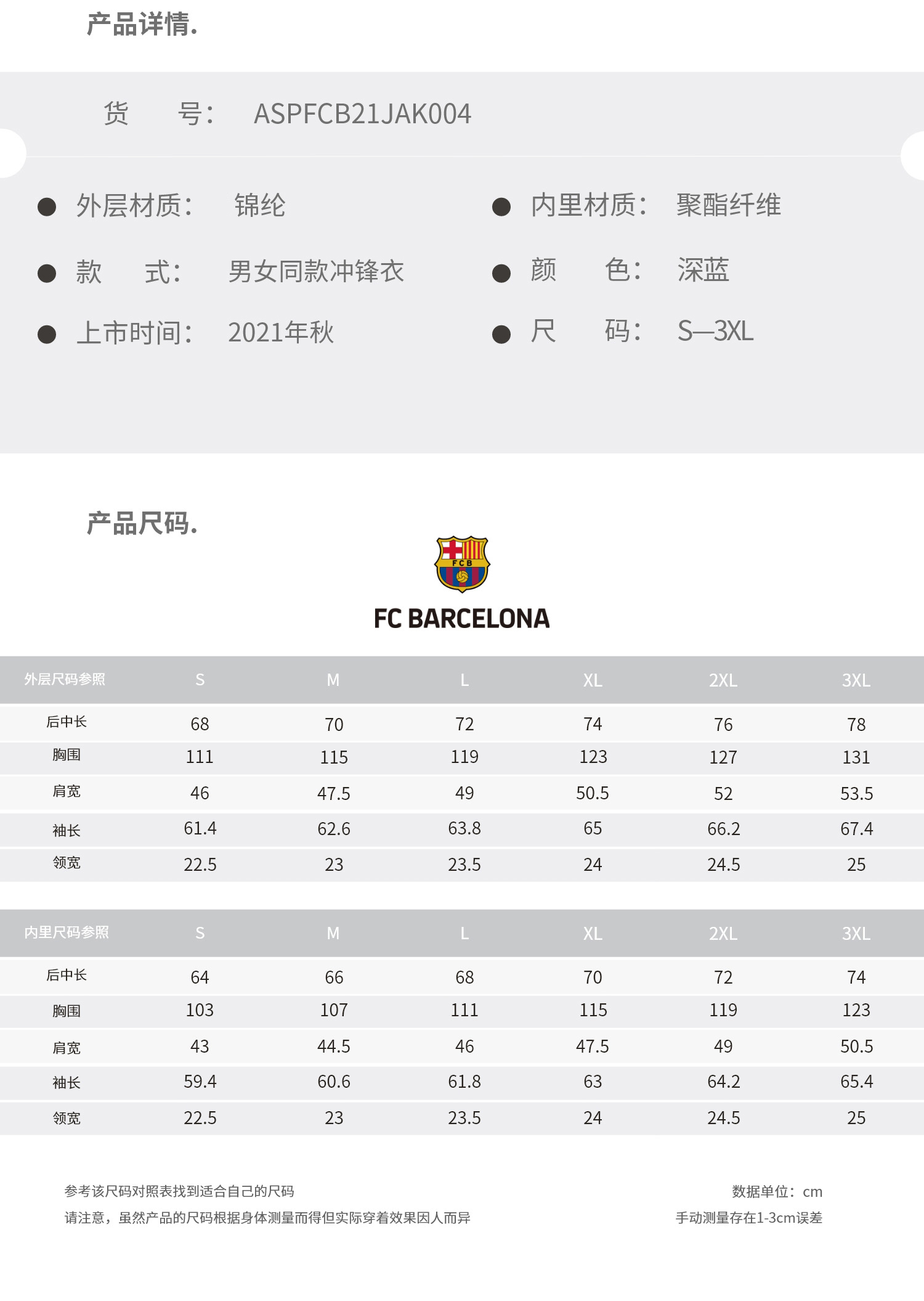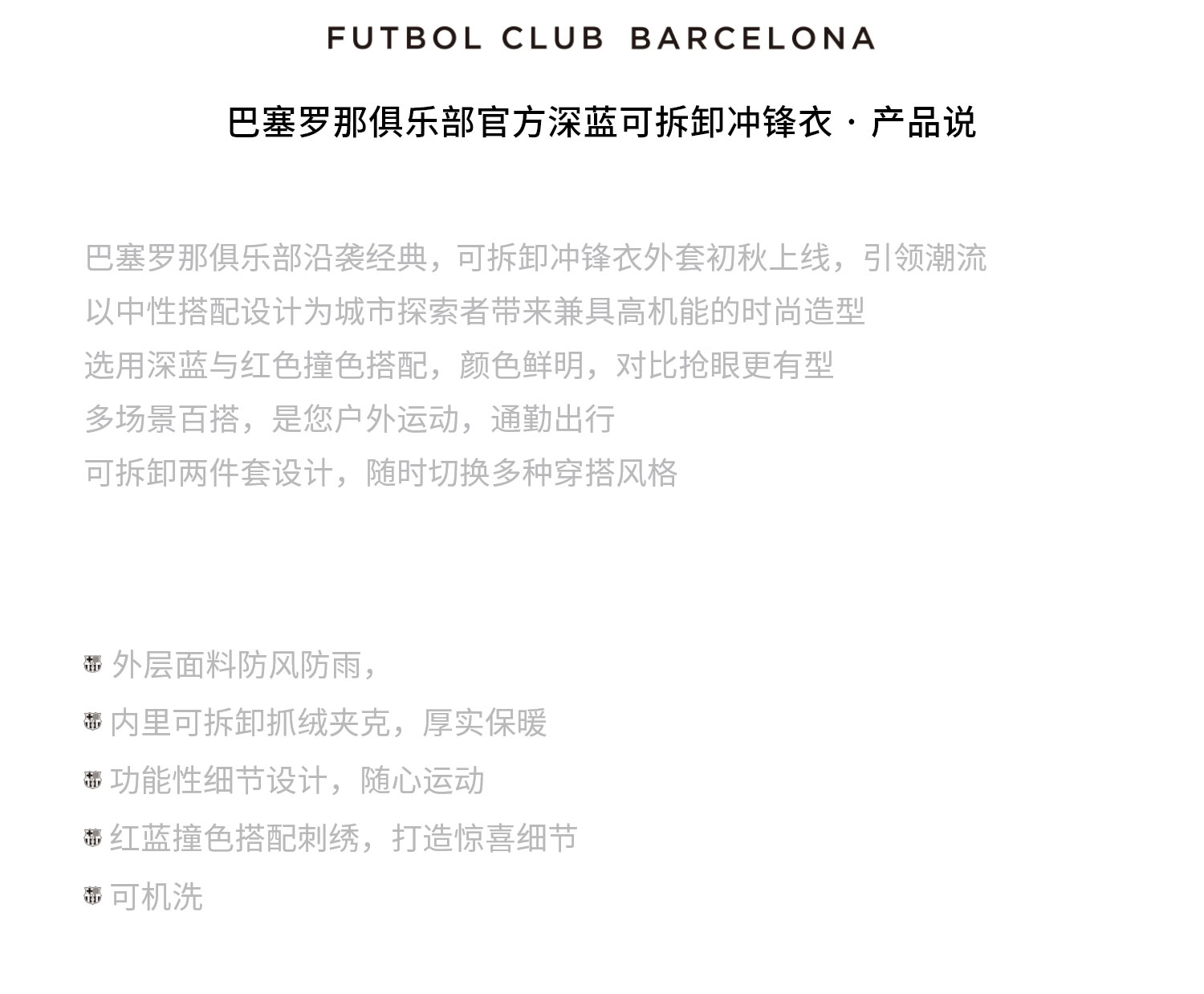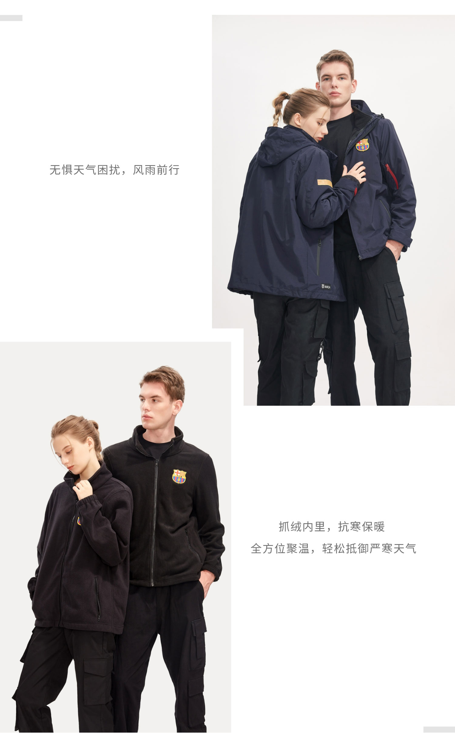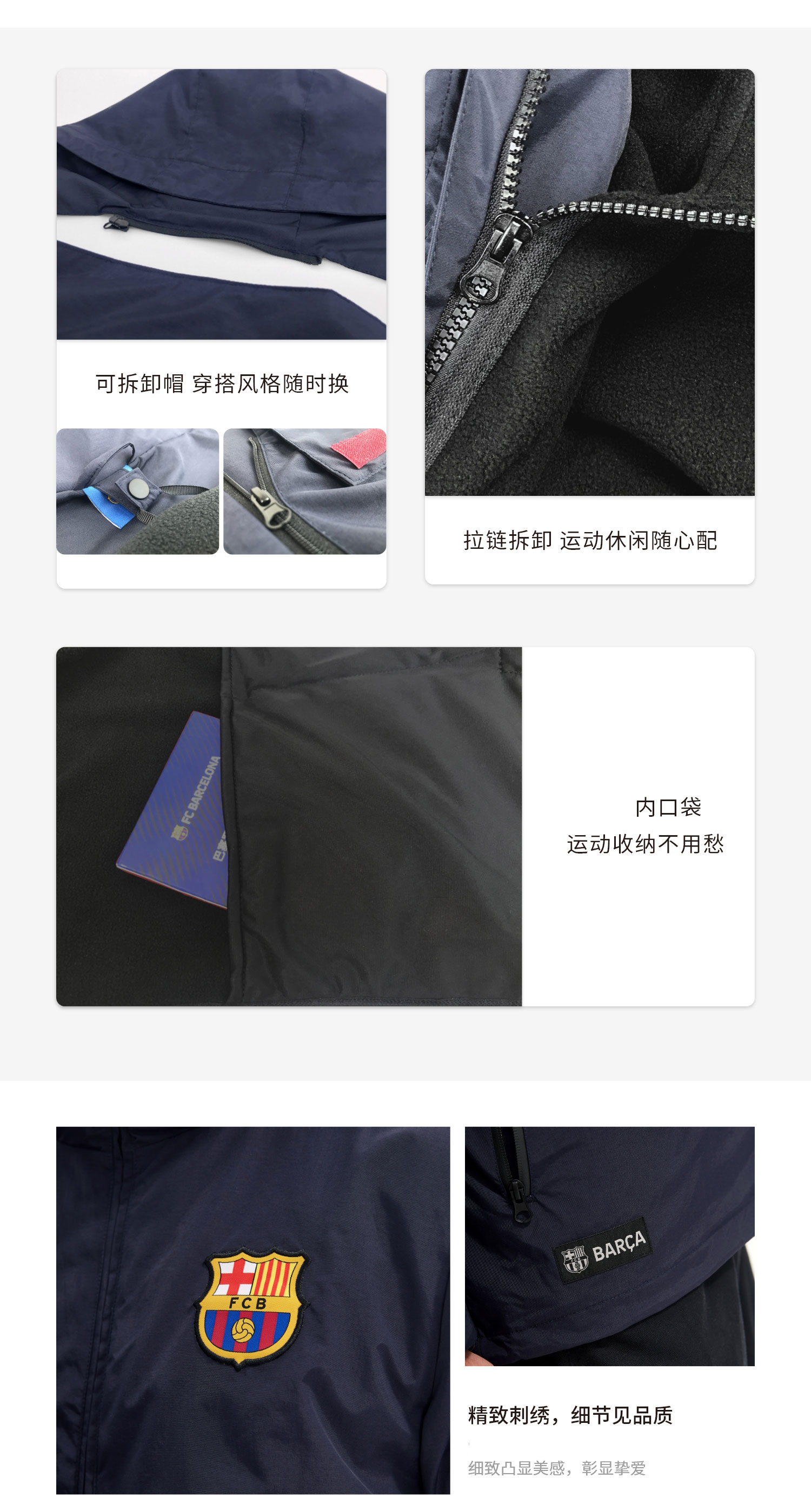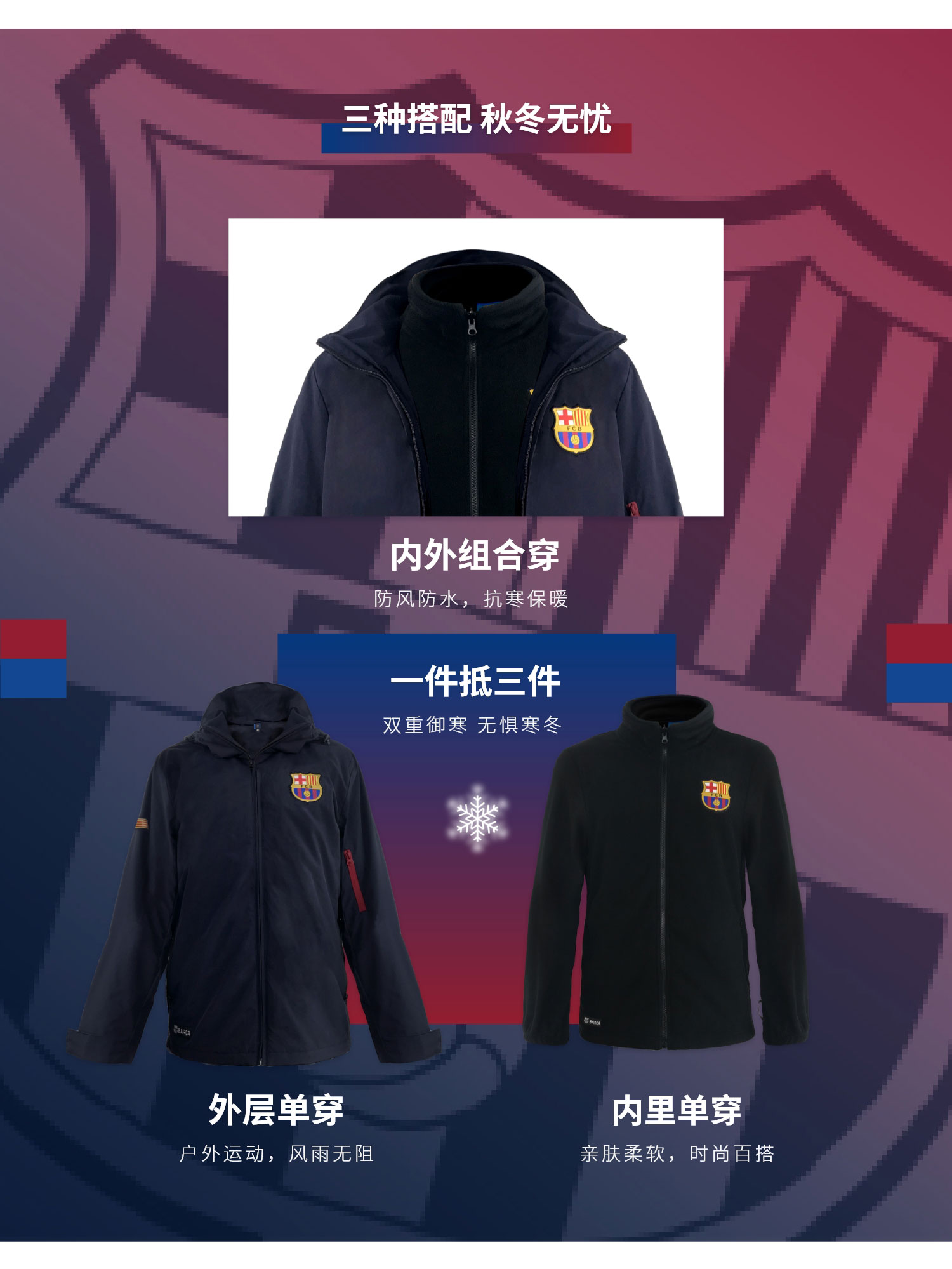 巴塞罗那足球俱乐部商品丨巴萨新款三合一冲锋衣男女同款保暖外套